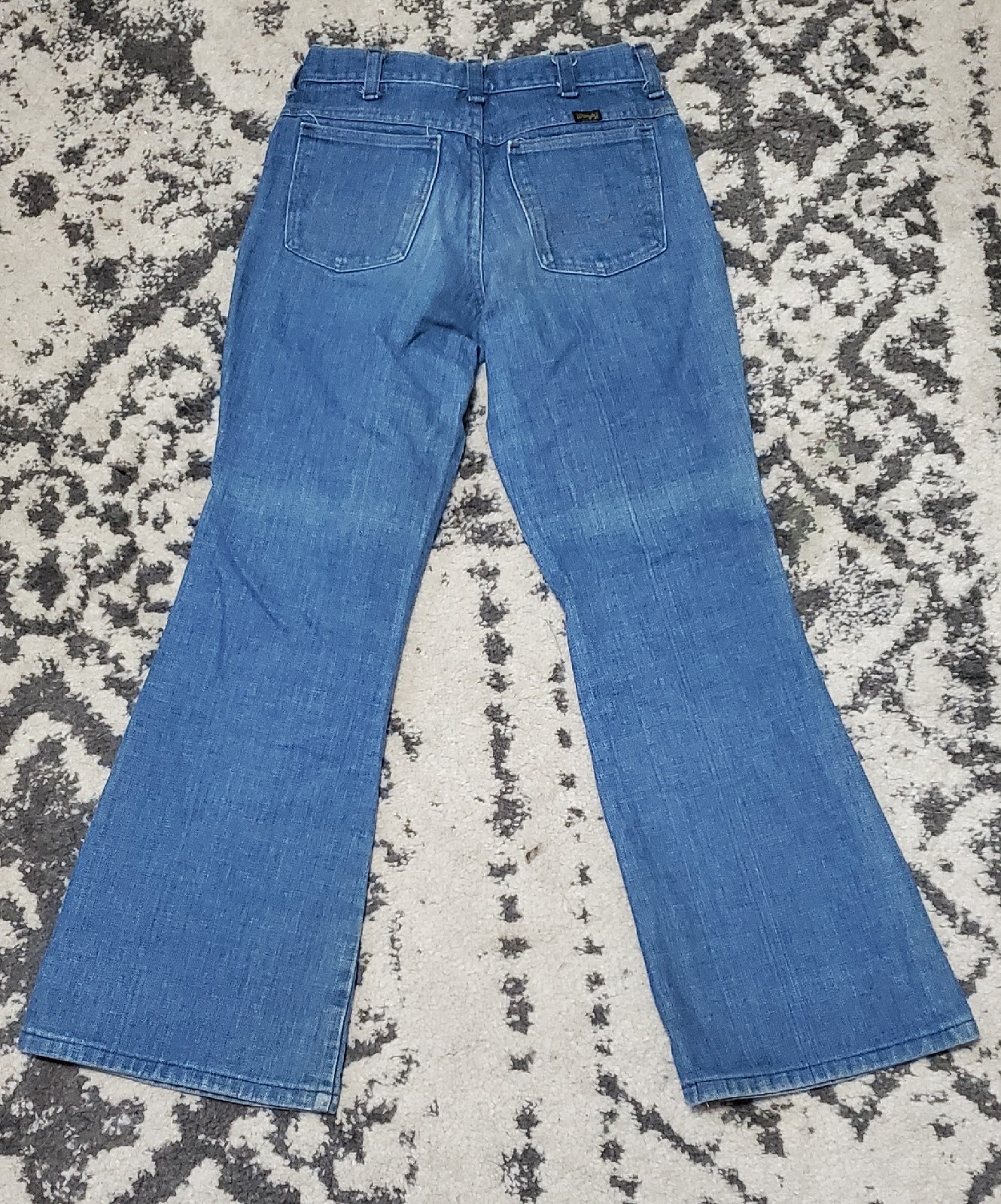 как выглядит Vintage 1970s Wrangler student boot cut jeans фото