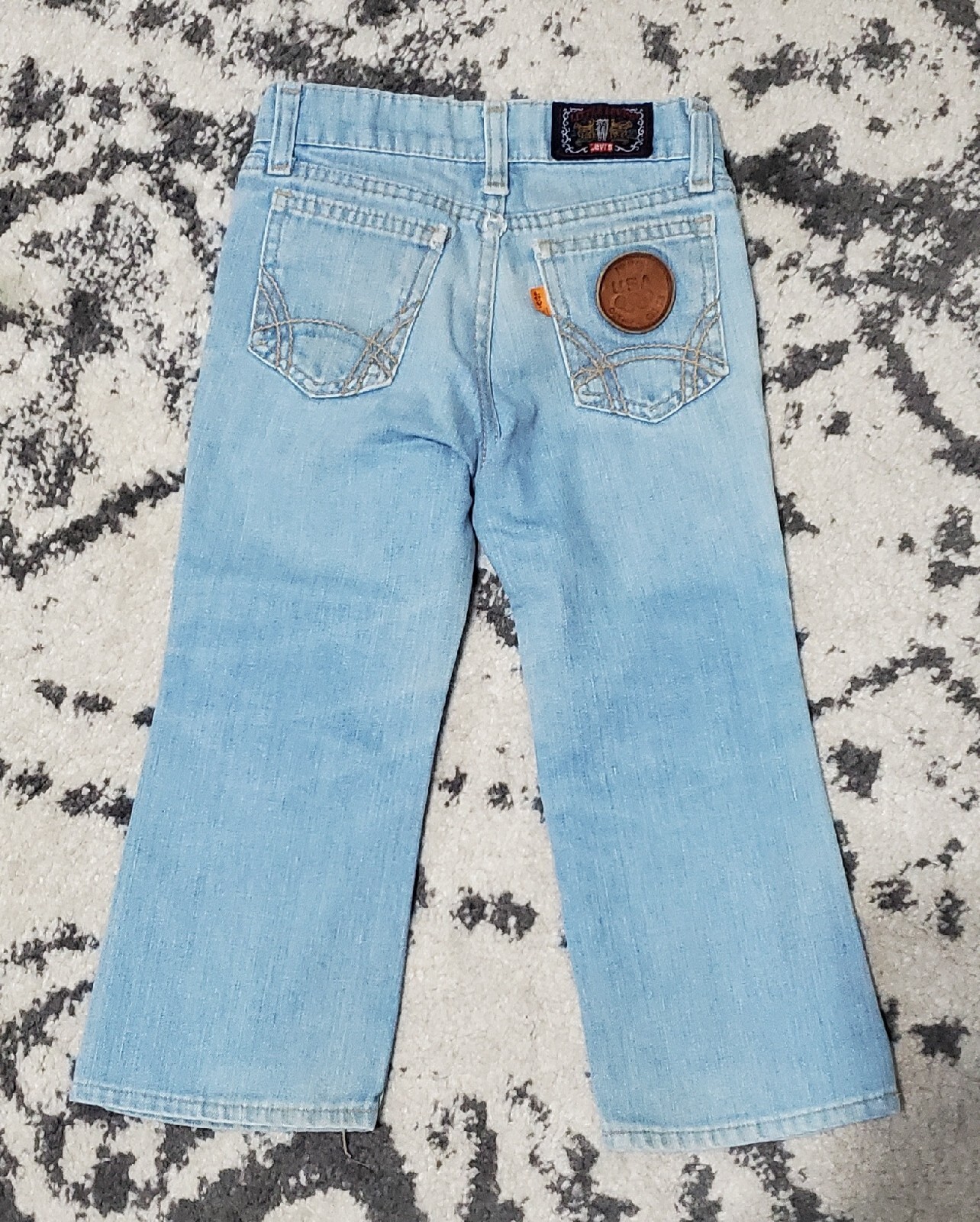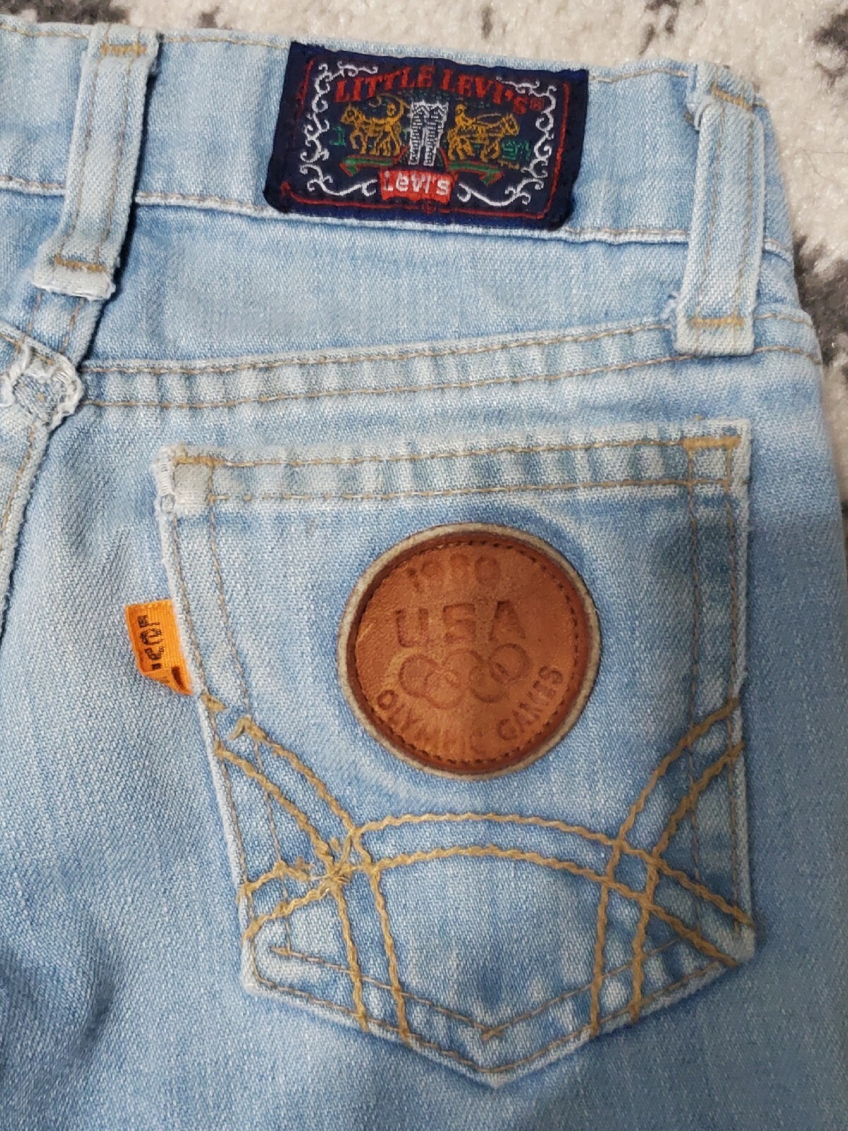 как выглядит Vintage 1980s kids little levis 1980s Olympic blue jeans. 1979 THING patch jeans фото