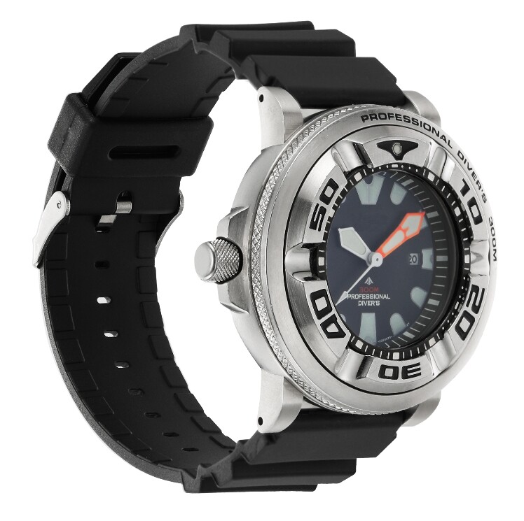 24mm Black Silicone Strap Silver Adapters for Citizen Eco-Drive Promaster BJ8050
