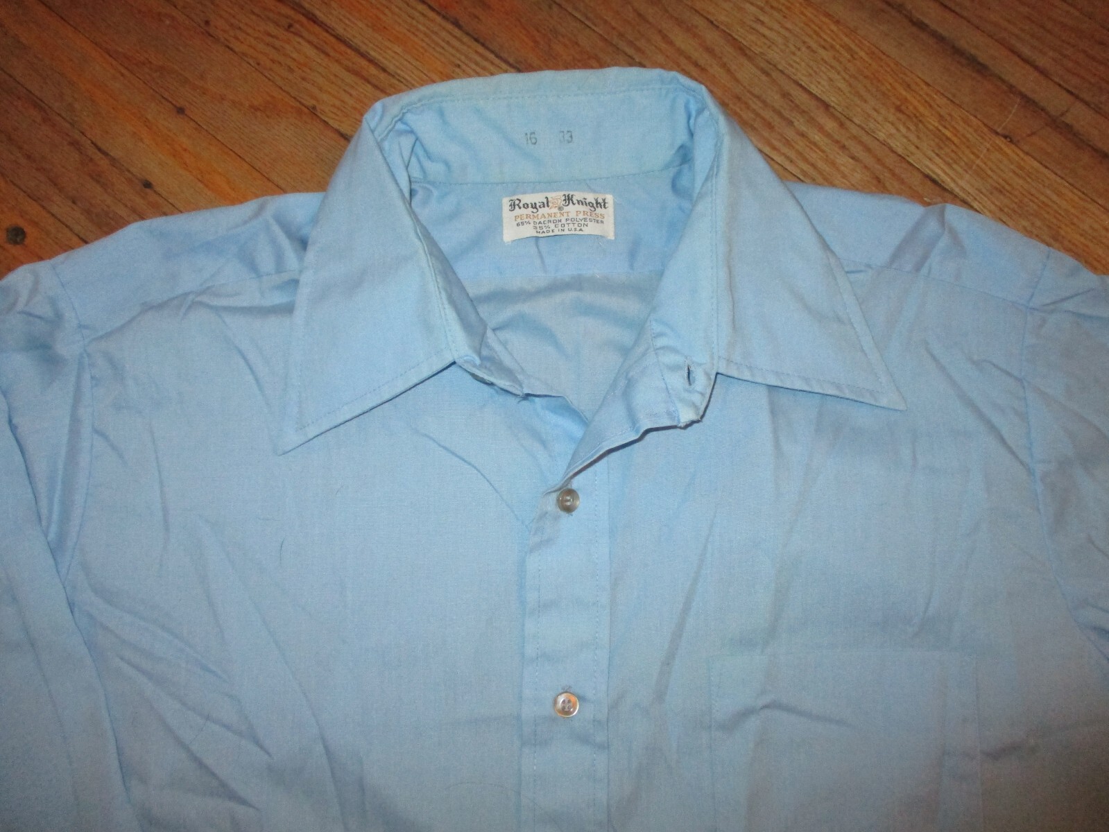 как выглядит vtg ROYAL KNIGHT PERMANENT PRESS BUTTON FRONT SHIRT Blue Mens 16 - 33 фото