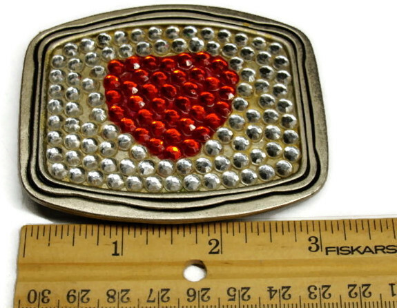 Heart Belt Buckle Silver Tone Western Rodeo Dress Bling
