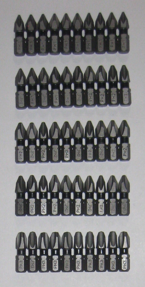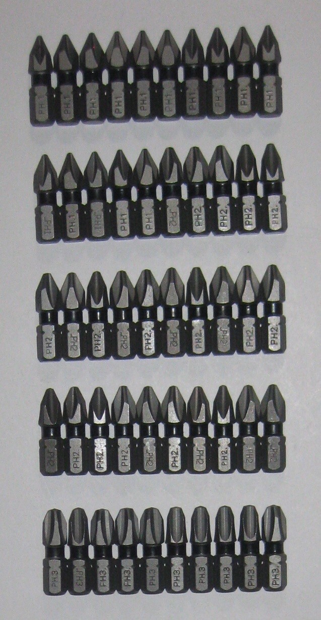 DEWALT TOUGH GRIP 1 PHILLIPS PH1 PH2 PH3 LOT OF 50 BITS TIPS IMPACT READY NEW