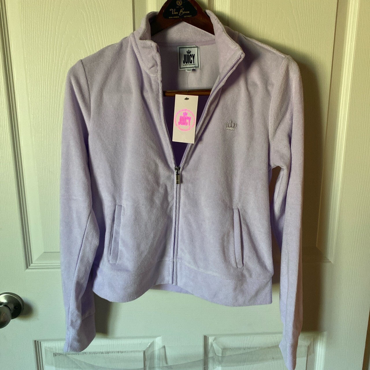 NWT Juicy Couture Purple terry Cloth zip up with crown Emblem Medium Y2K