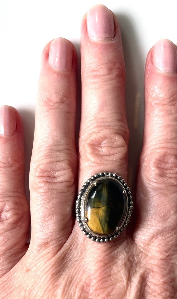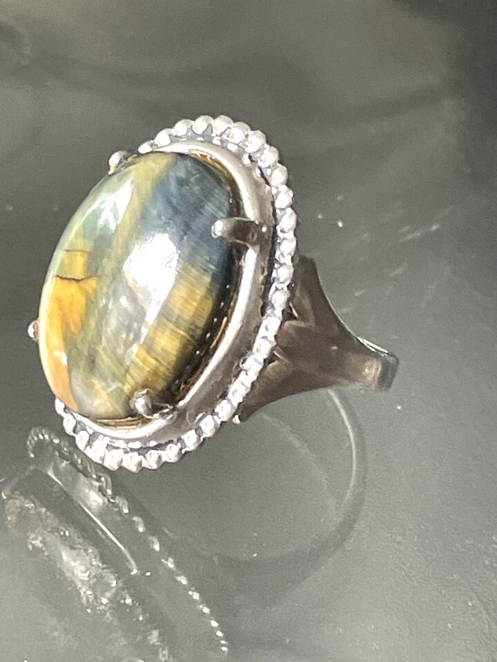 925 STERLING SILVER AND RARE KIND OF TIGER'S EYE RING SIZE 6