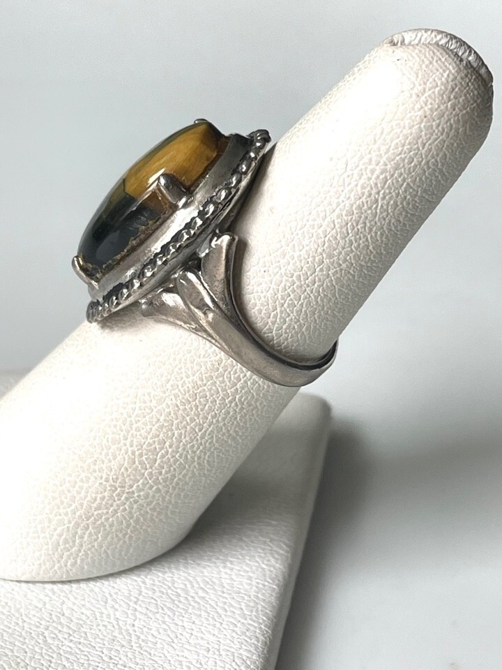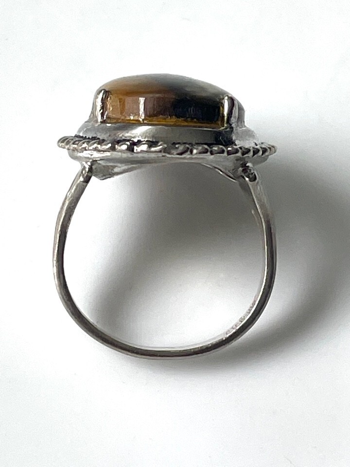 как выглядит 925 STERLING SILVER AND RARE KIND OF TIGERS EYE RING SIZE 6 фото