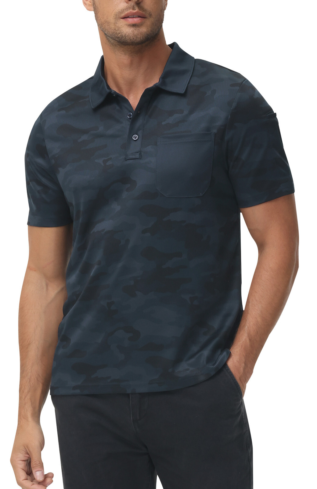 Men Camo Golf Polo Shirt Short Sleeve Sport Casual Basic Button Collared Top