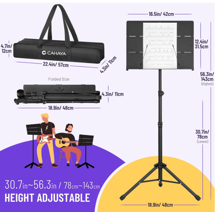 56 Foldable Music Stand with Carrying Bag - Adjustable Height, Portable Design