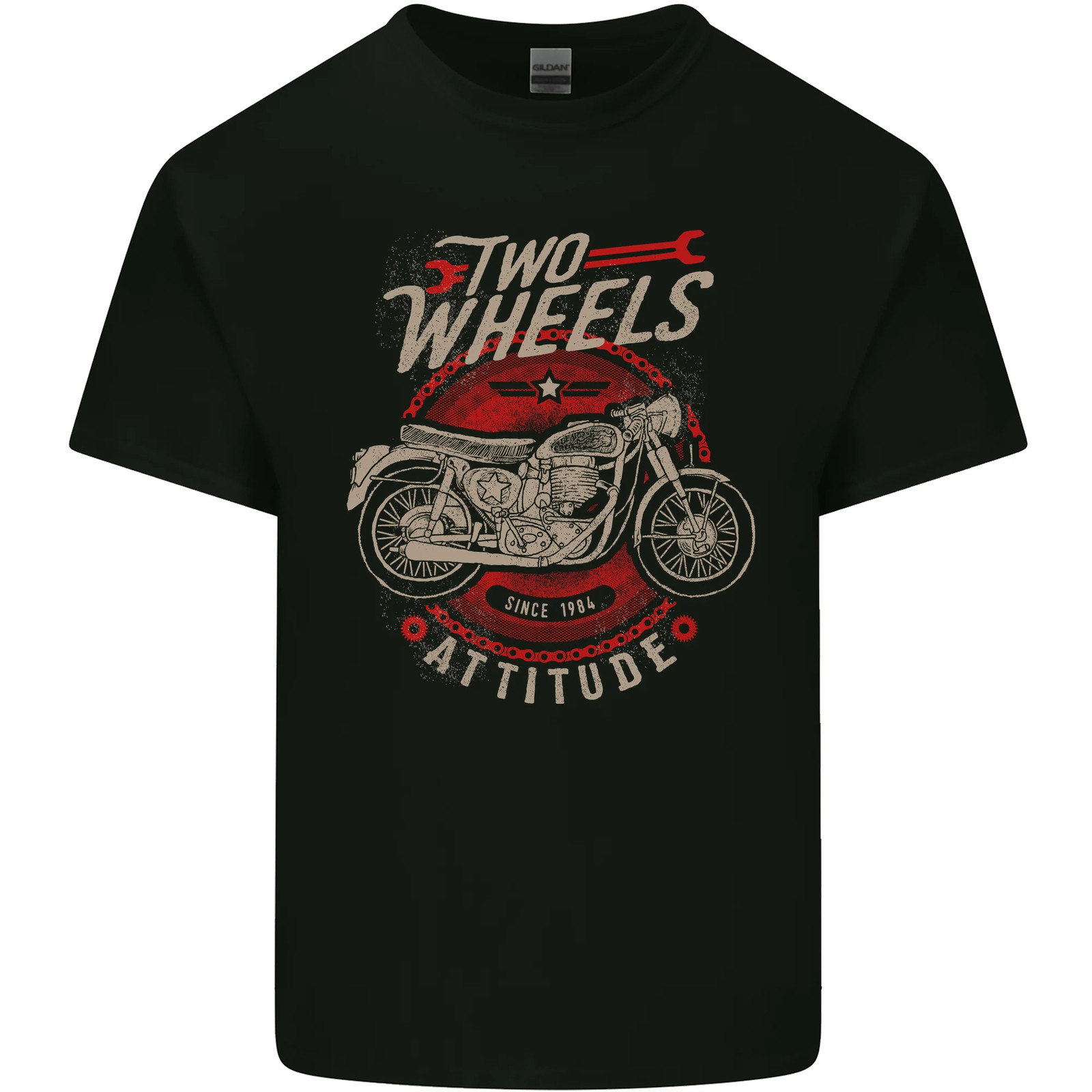 Two Wheels Attitude Biker Motorcycle Motorbike Mens Cotton T-Shirt Tee Top