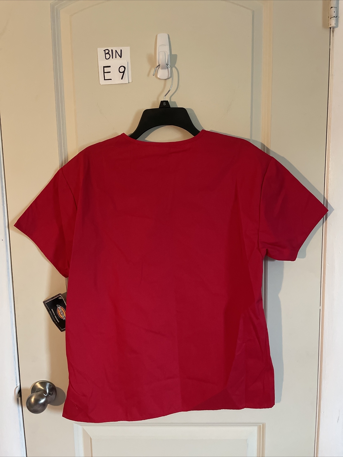 как выглядит Dickies Red Scrub Top with Pockets size L фото