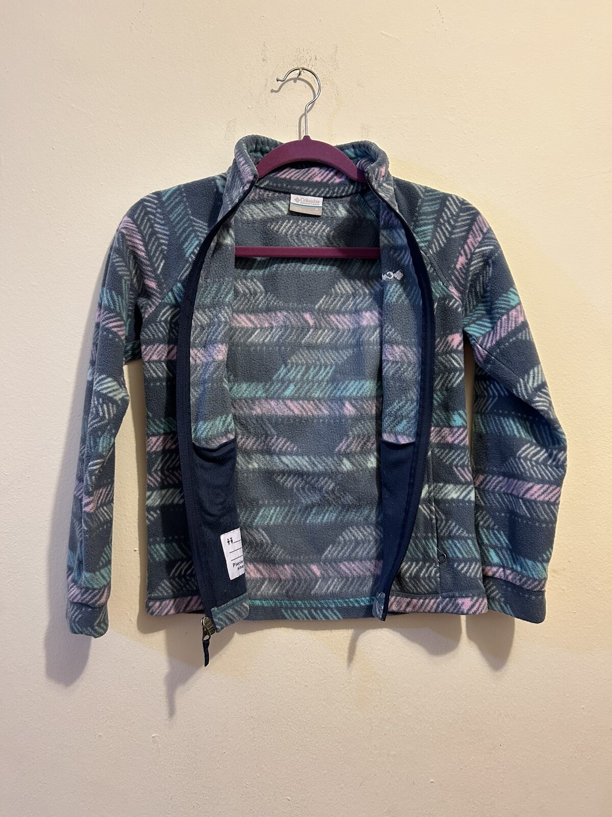 как выглядит Kids Columbia Aztec Jacket Sz M 10/12 fleece zip up Gray Pink фото