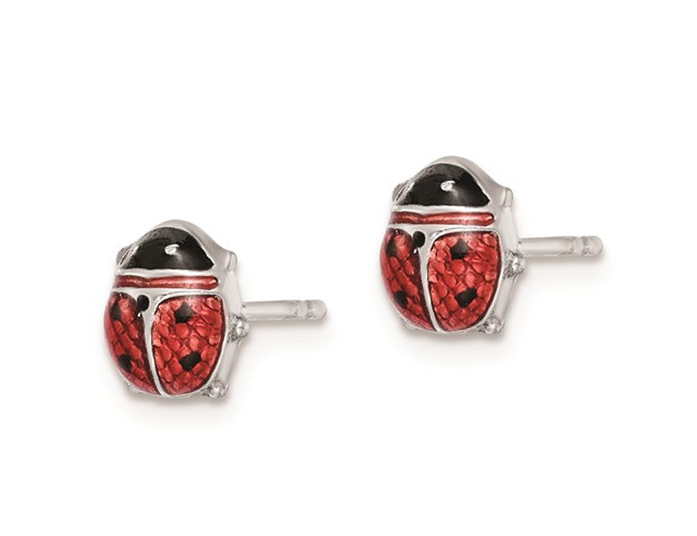 Sterling Silver Post Earrings with Enameled Lady Bugs
