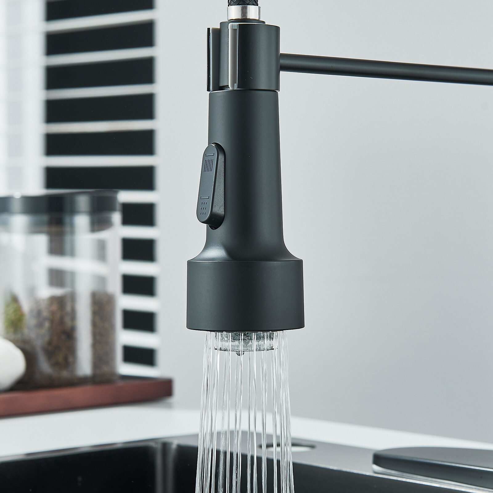 Kitchen Faucet 1 Hole Sink Mixer Single Handle Pull Down Sprayer Swivel Faucet