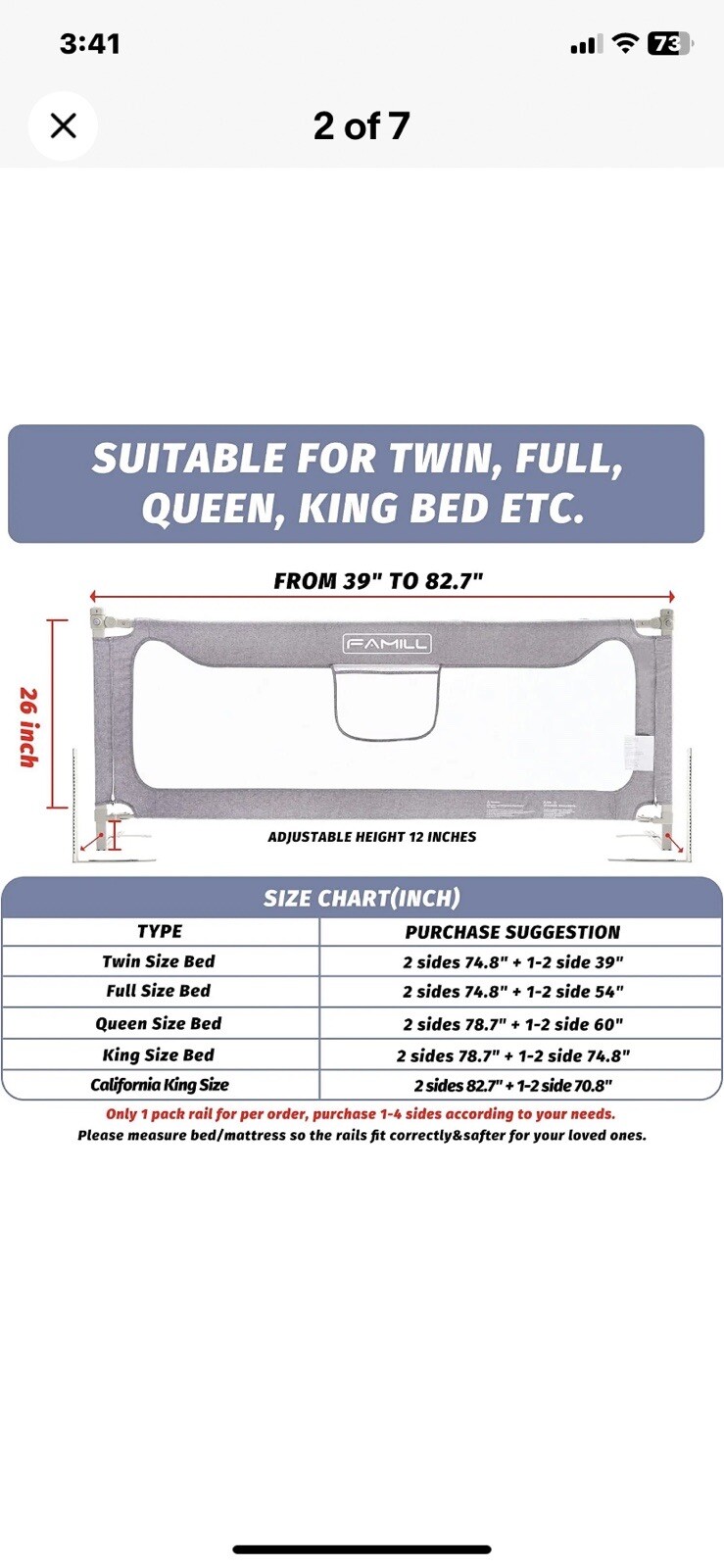как выглядит FAMILL Bed Rail for Toddlers for Full Queen Size Beds 78.7 in. фото