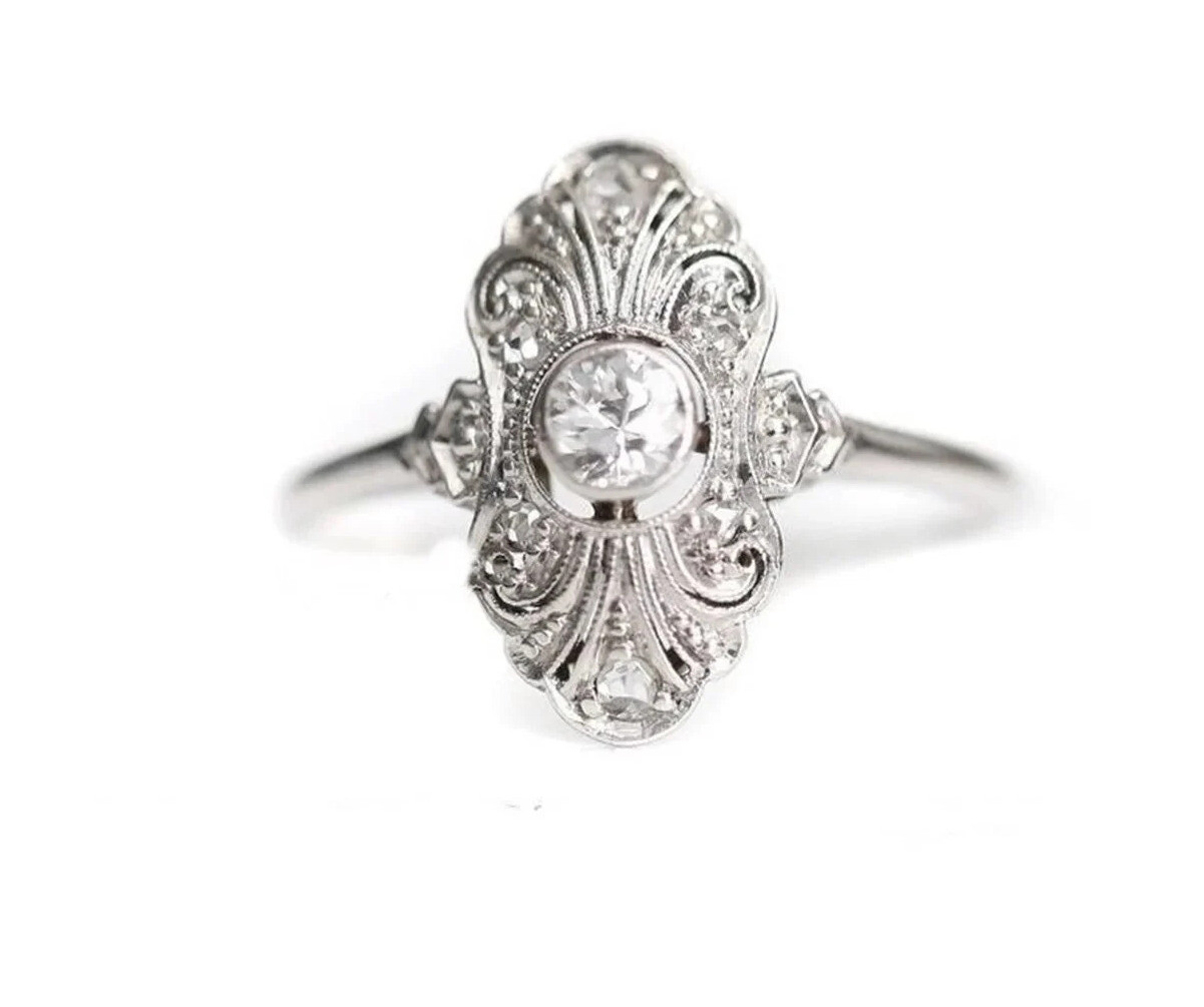 как выглядит 1/3CT White Round Cut CZ Antique Art Deco Engagement Wedding 925 Silver Ring фото