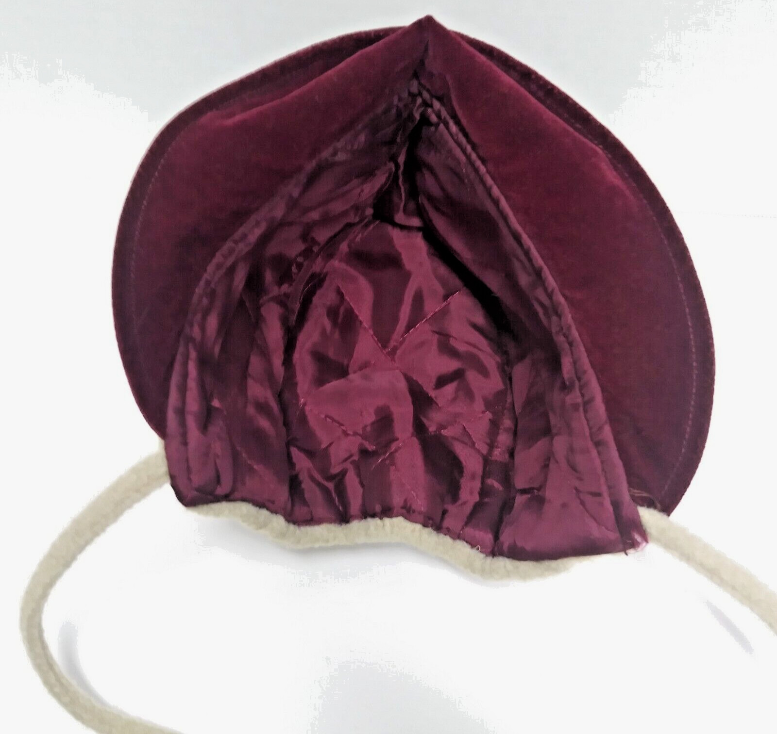 Girl's Tan Bonnet Burgundy Bill Quilted Lining Laura Ingalls Pioneer Amish Hat
