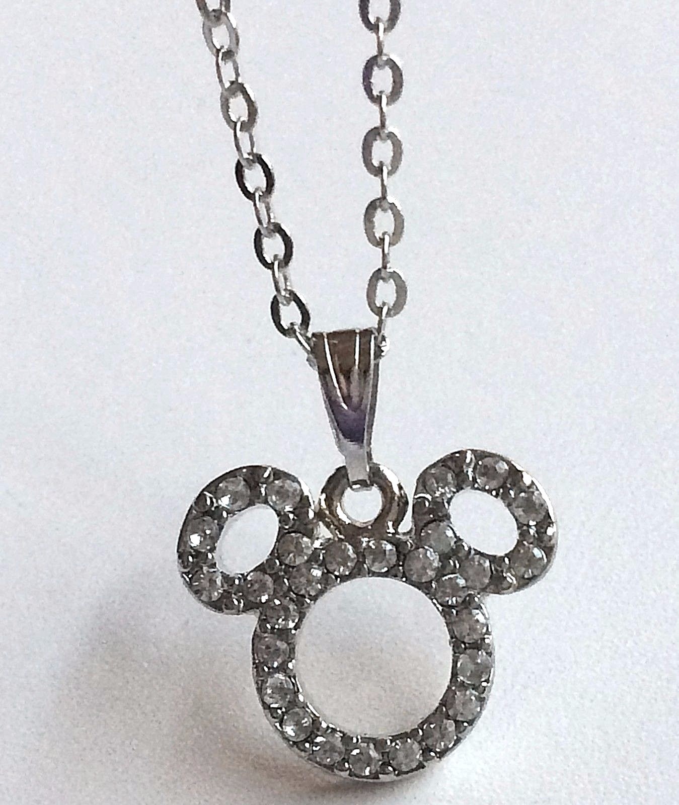 как выглядит Disney Mickey Mouse Ears Necklace Disneyana Crystal Silver Plated 19" Signed фото
