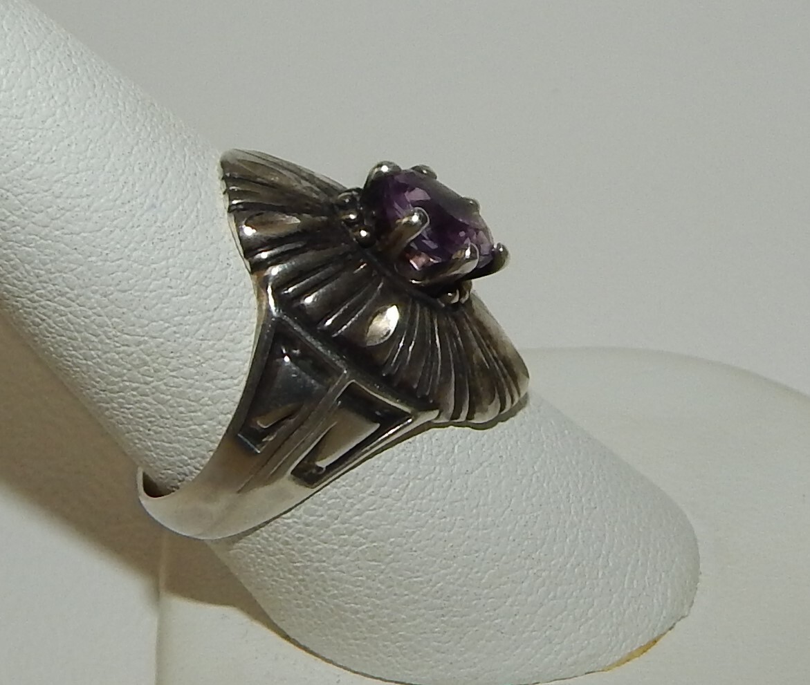 как выглядит Vintage Sterling Silver 1.25-Carat Oval Amethyst Ring 7.5 Grams Sz 8 фото