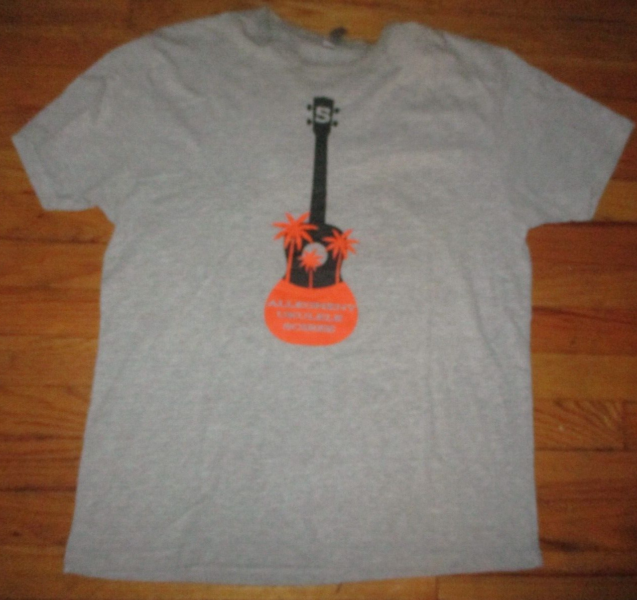 Gray ALLEGHENY UKULELE SOIREE Logo T Shirt Large 100 Cotton