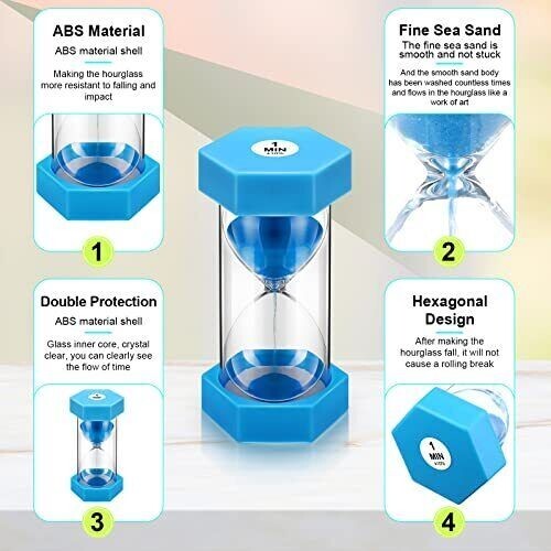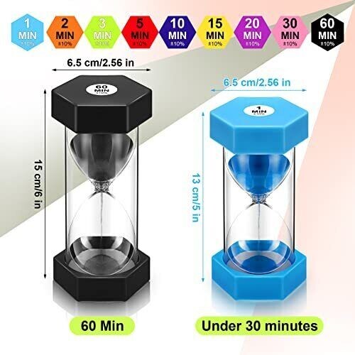9 Packs Sand Timer 1/2/3/5/10/15/20/30/60 Minutes Hourglass Colorful Kids
