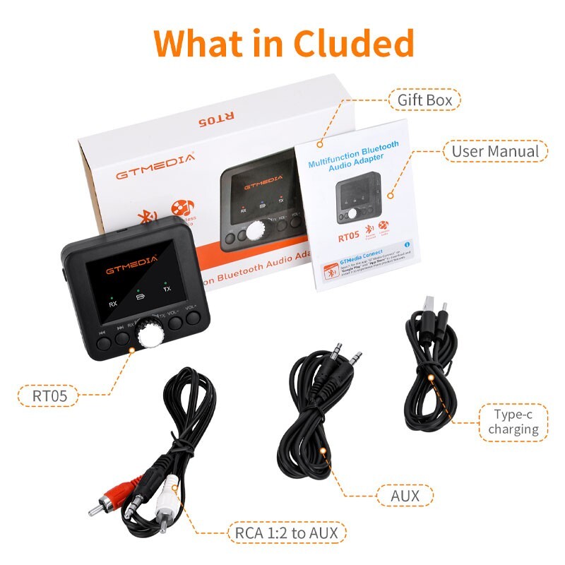 GTMEDIA RT05 Bluetooth Audio Adapter Bluetooth5.0 Transmitter Receiver for Phone