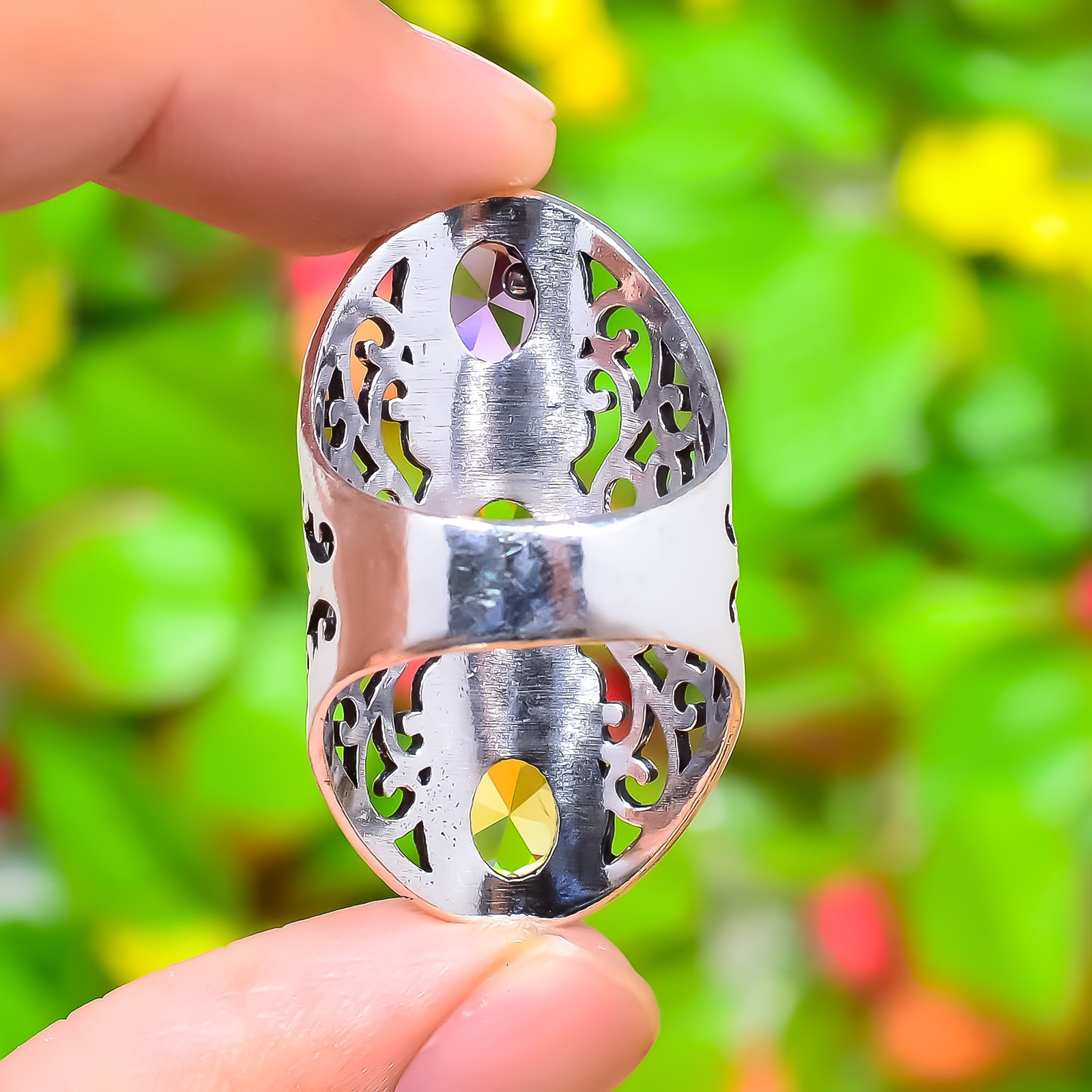 Natural Amethyst, Peridot Gemstone Handmade 925 Sterling Silver Ring Gift N859