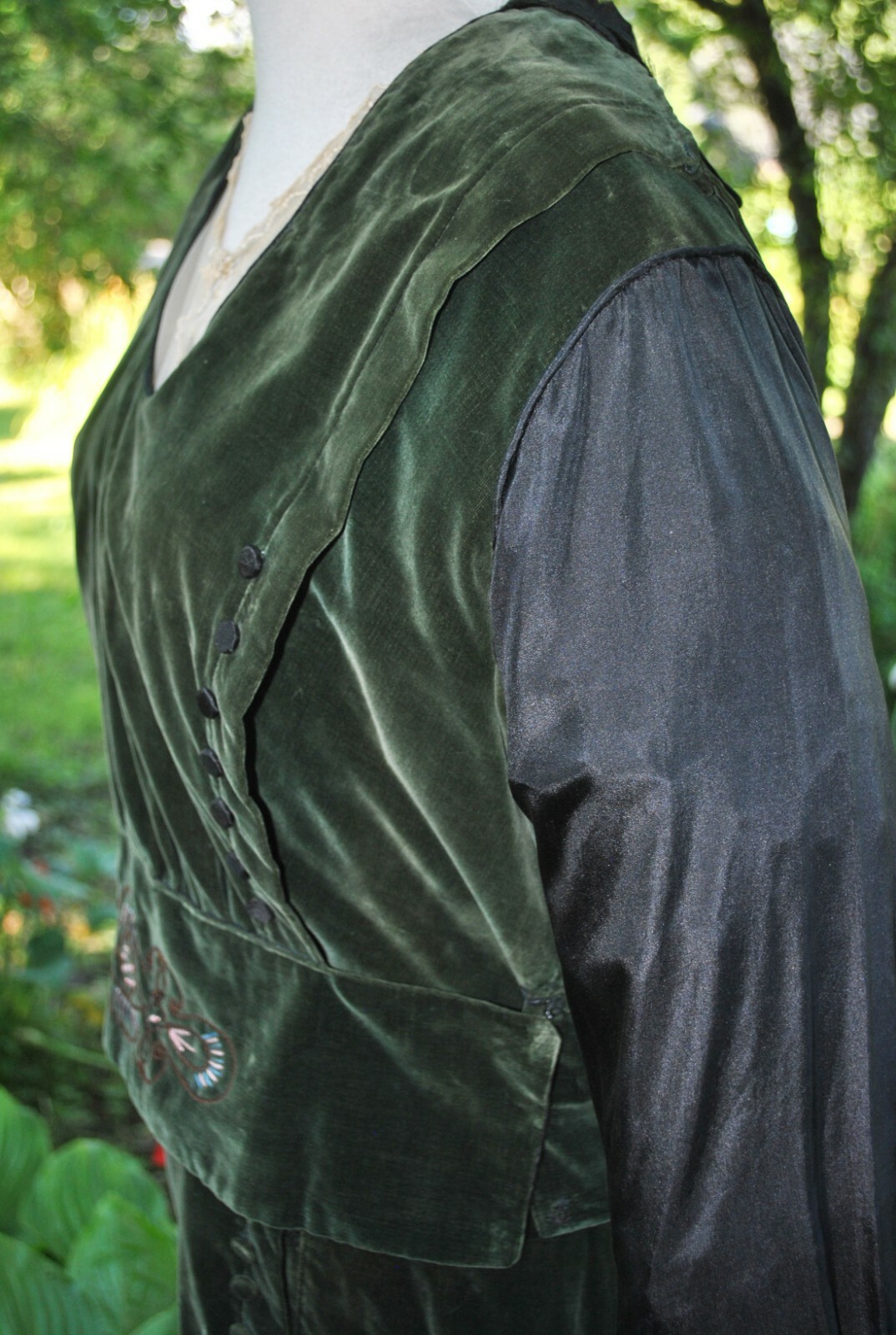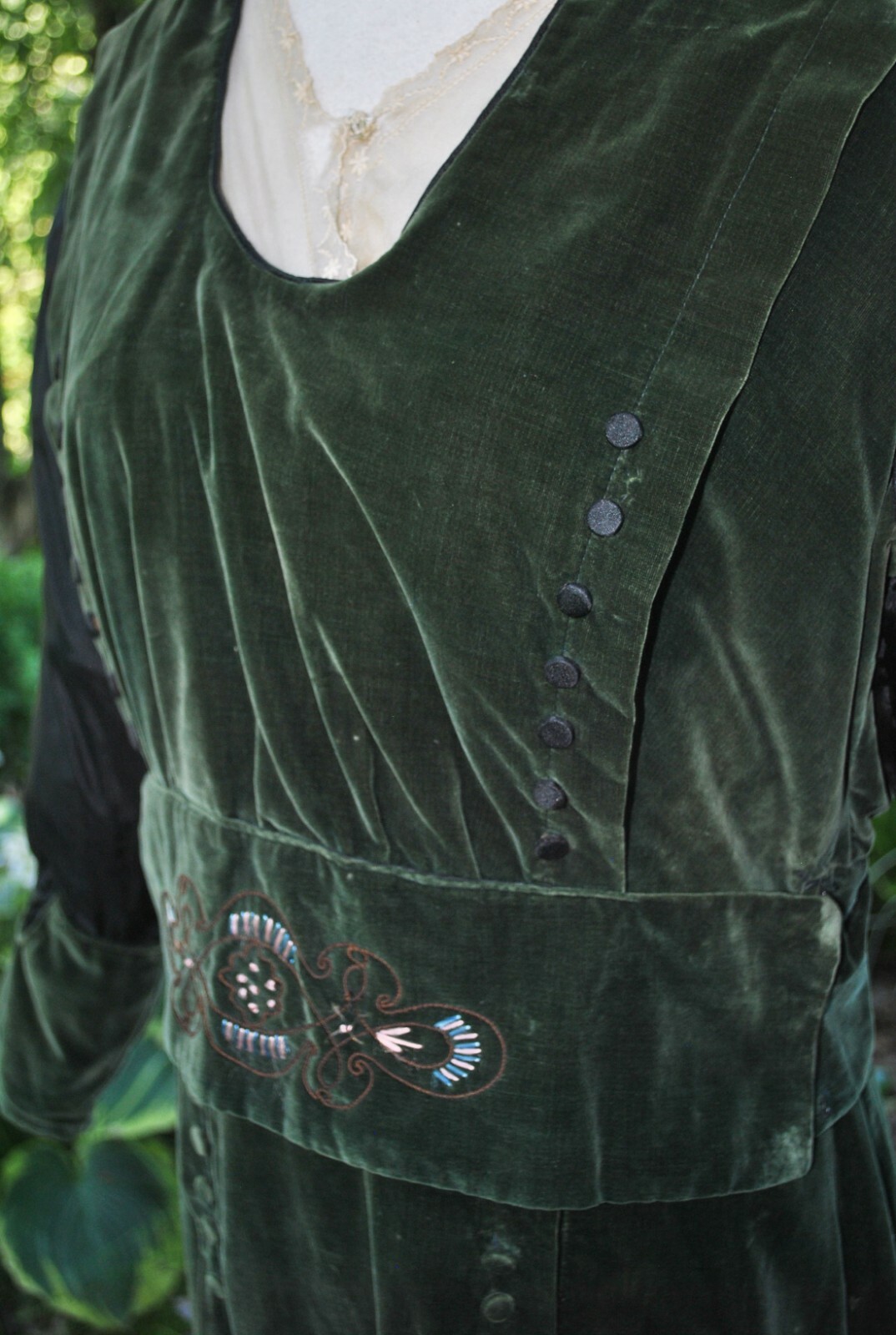 как выглядит Arts And Craft 1915 Green Velvet Evening Dress фото