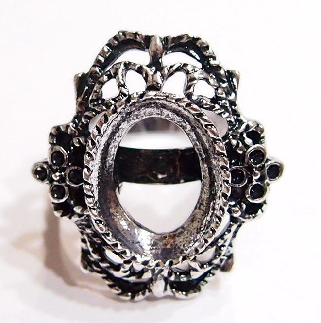 4 Colors 18x13 mm Victorian Art Deco Lacy Flower Adjustable Ring Settings, Nice