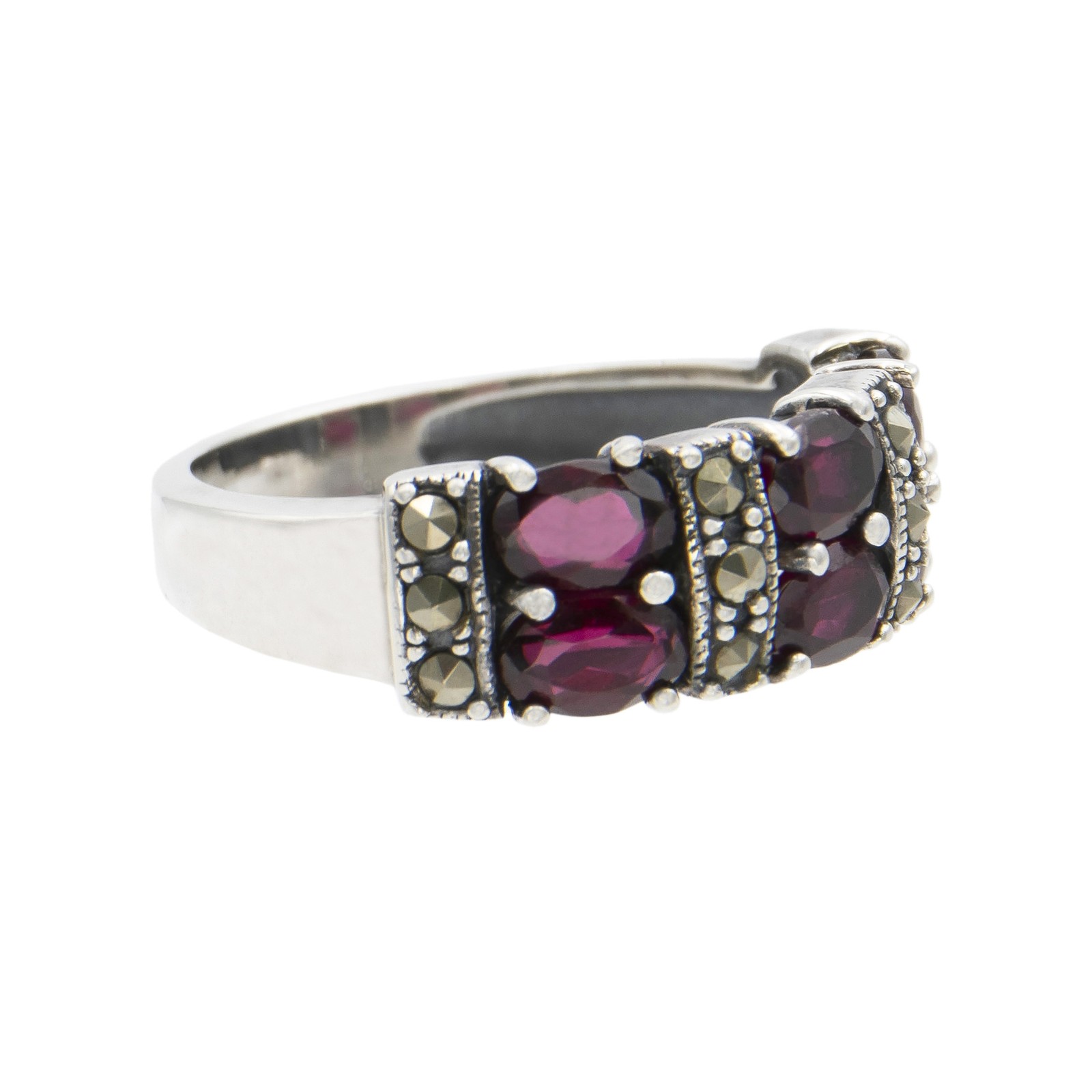 как выглядит Sterling Silver Red Garnet and Marcasite Statement Ring, Size 9 фото