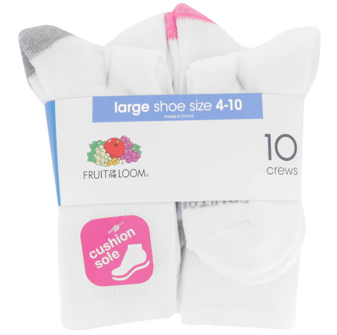 как выглядит Fruit of the Loom girls 10-pairs Sport Soft Crew Casual Socks фото
