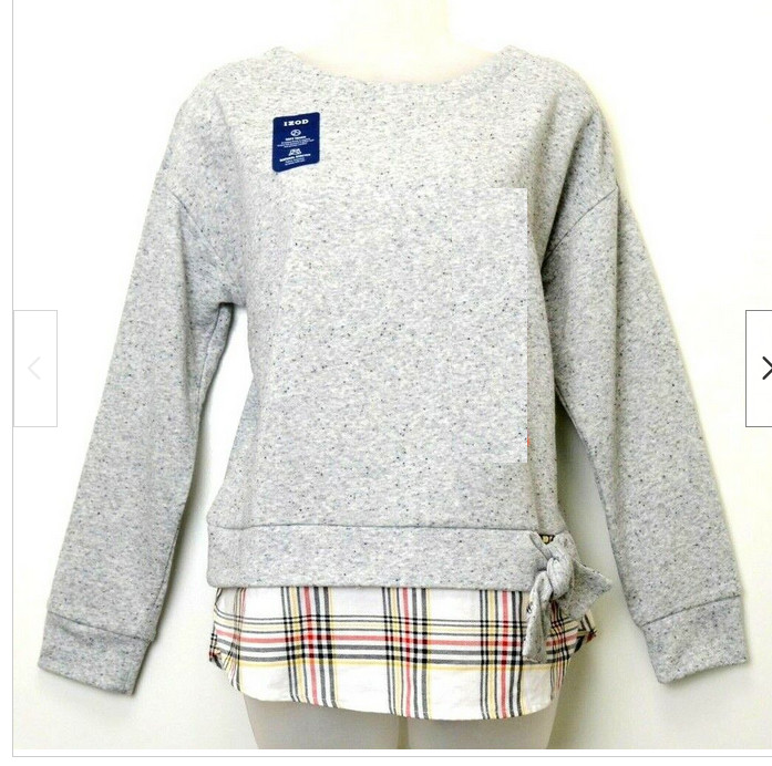 как выглядит IZOD Womens Long Sleeve Tie-Front 2-Fer Sweatshirt Light Heather Gray L NWT фото