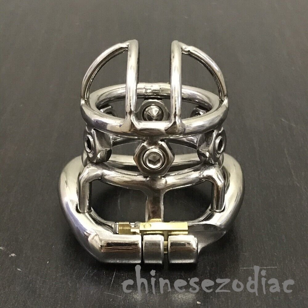 Stainless Steel Male Chastity Device Small Cage Men Metal Lock Belt Screws CC149