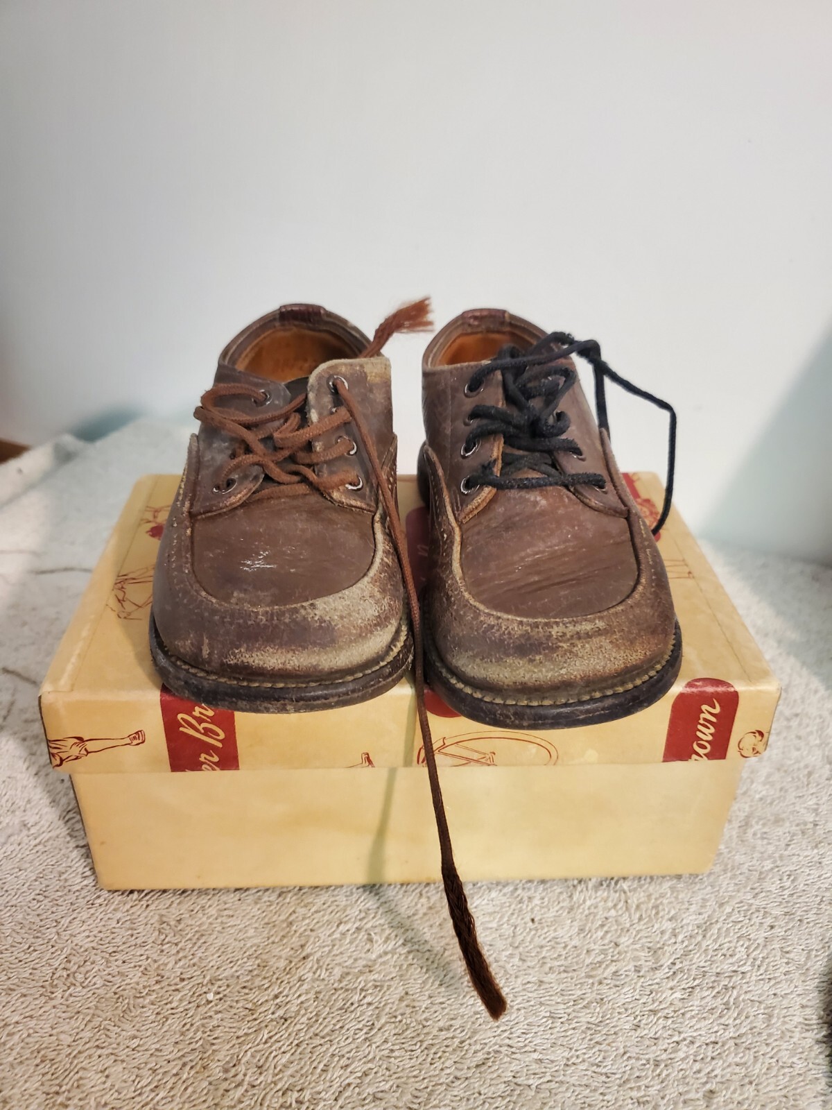 как выглядит 2 pair Vintage Toddler Leather Shoes Brown Black Size 5D 5.5D Montgomery Ward фото