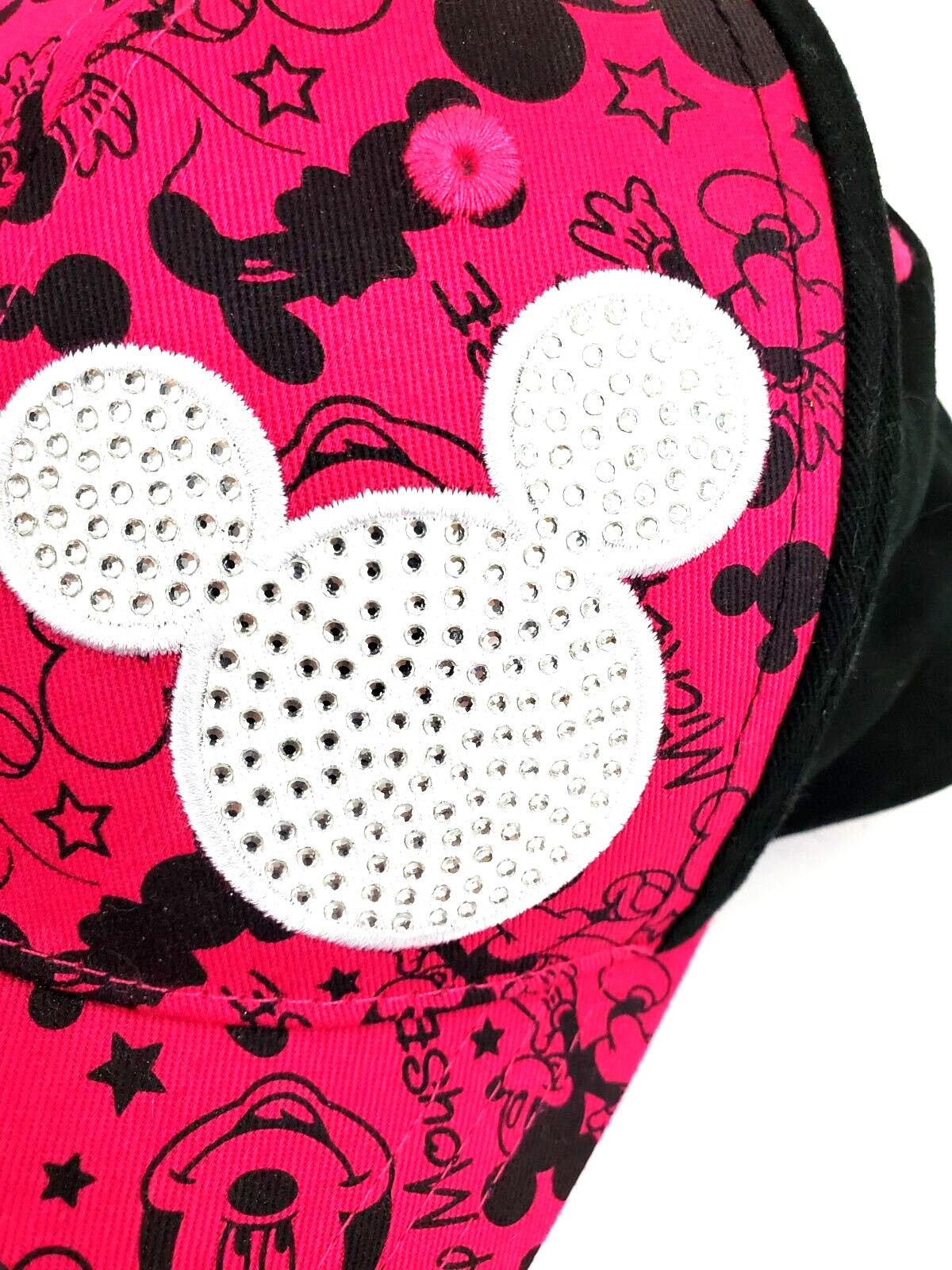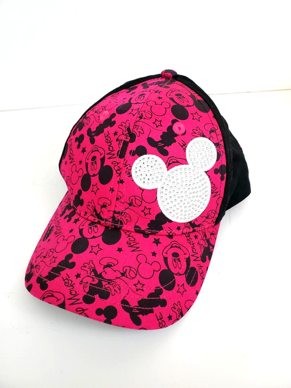 • Disney Parks Mickey Mouse Hat Cap Youth Adjustable Pink Black Rhinestones Bling
