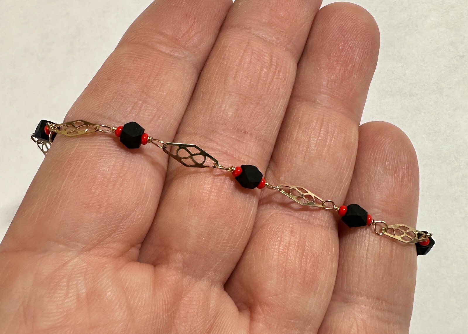 как выглядит 14K Yellow Gold Filled Genuine 4mm Azabache Jet 6" Plaque Baby/Kids Bracelet фото