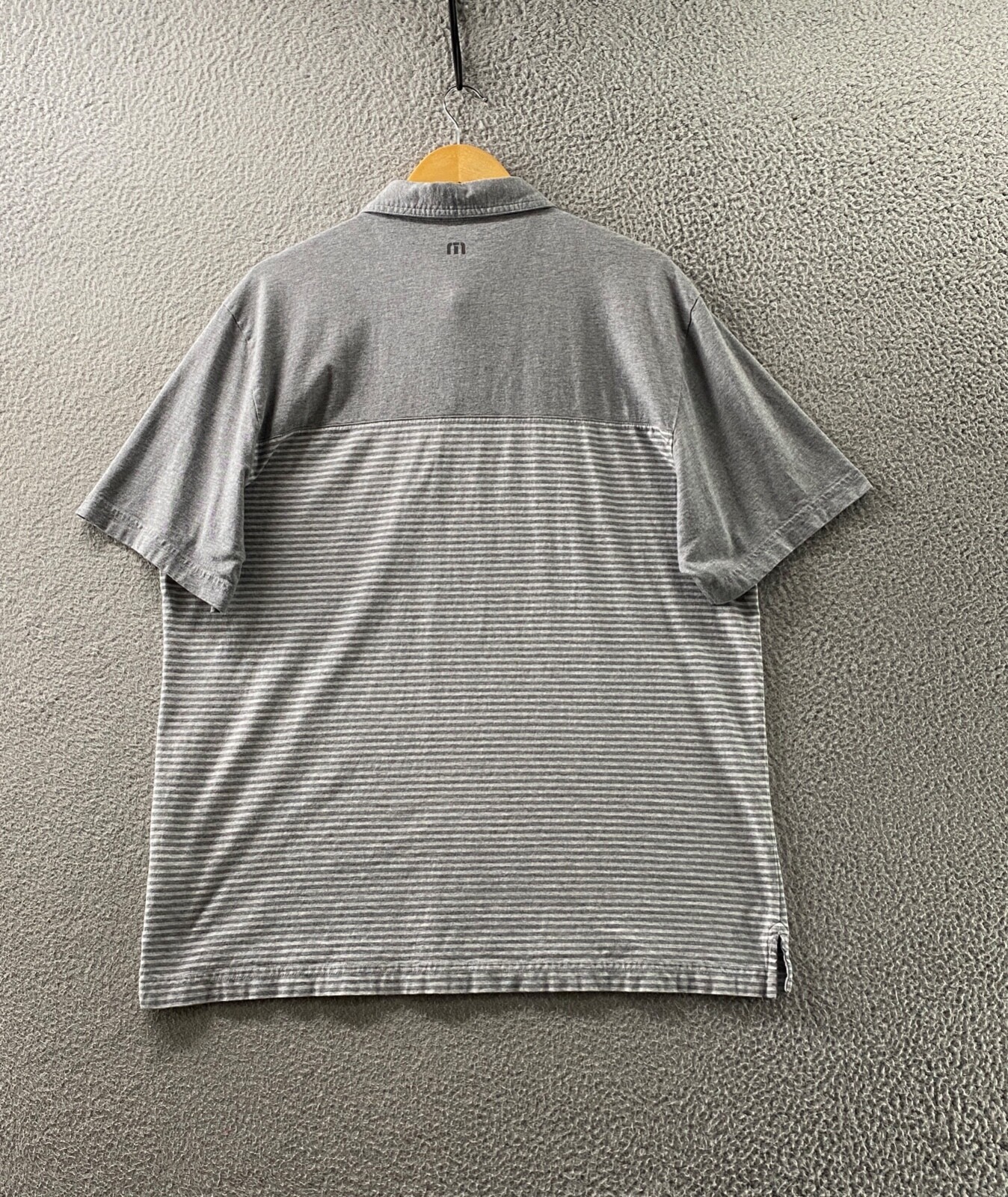 Travis Mathew Polo Shirt Mens Extra Large Gray Striped Golf Casual Short Sleeve