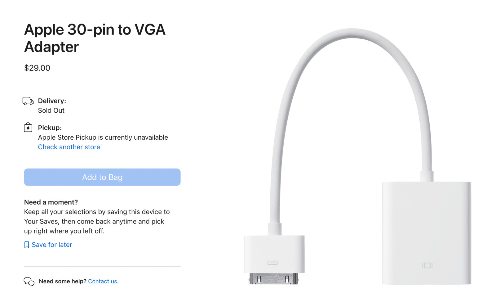 Genuine Apple VGA Adapter 30-pin to VGA Model A1368 MC552ZM/B New and Sealed