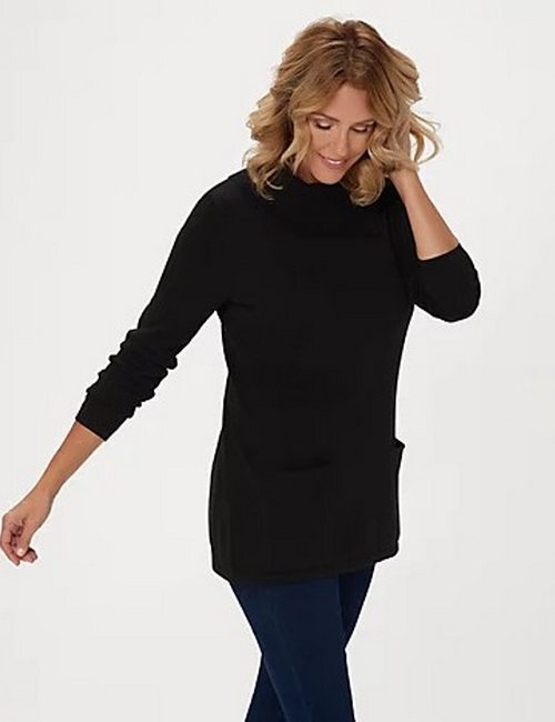 как выглядит Isaac Mizrahi Live Heather Grey Split Neck Collar Sweater Pockets Tunic New фото