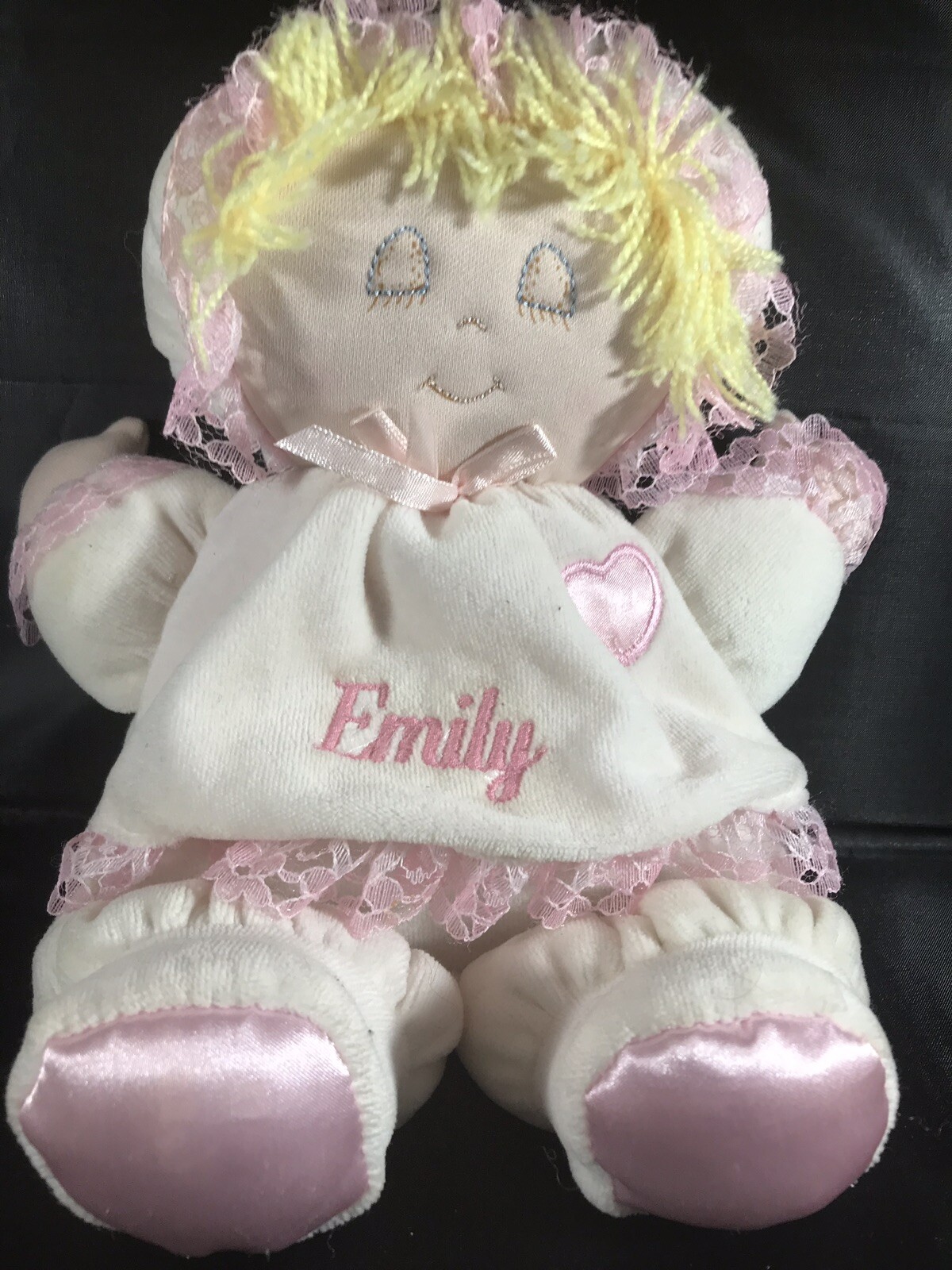 EDEN 10 PLUSH DOLL PINK BLOND yarn sleepy eyed satin BABY LOVEY sleeping