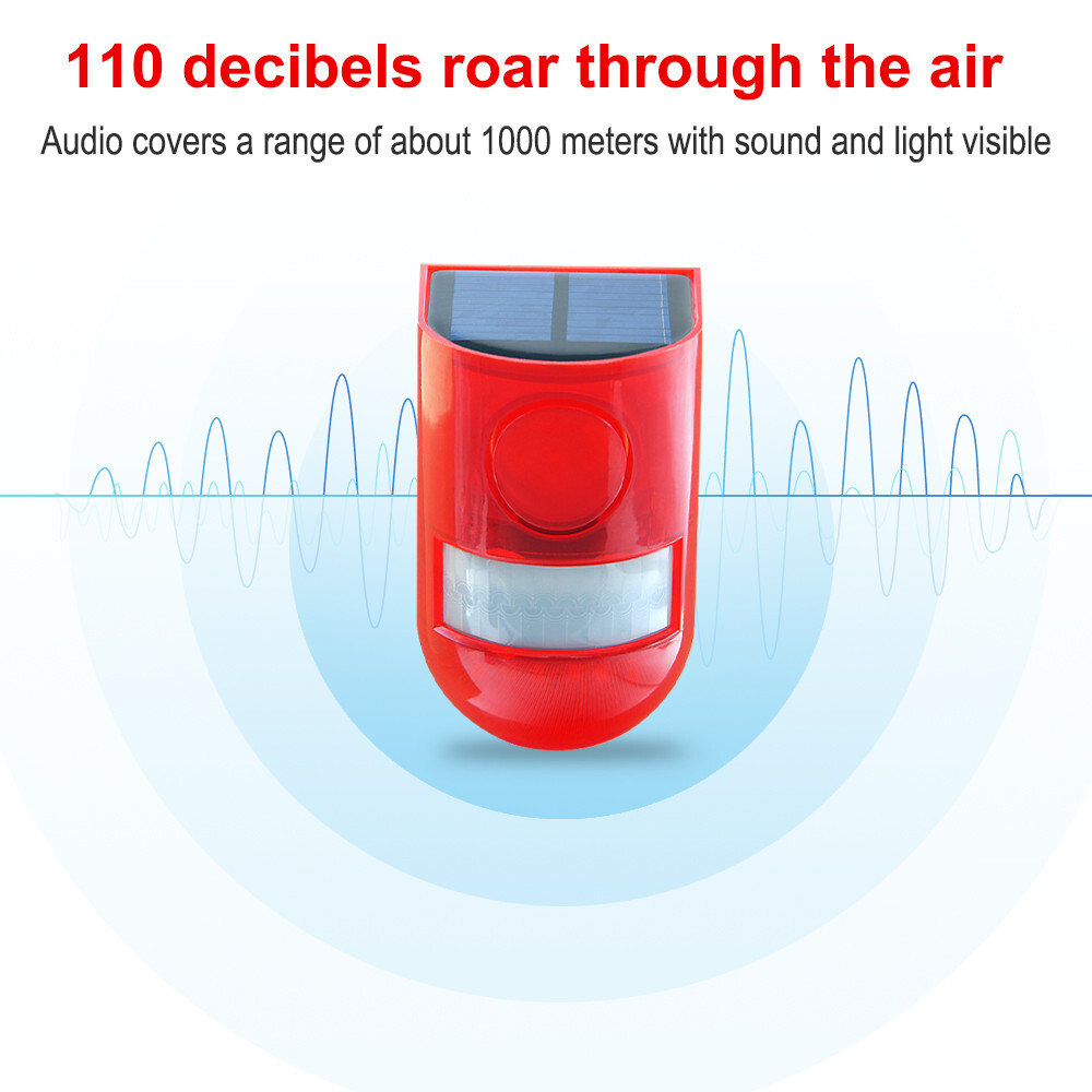 Solar Alarm LED Light Solar Strobe Light Wireless Motion Sensor Detector Outdoor