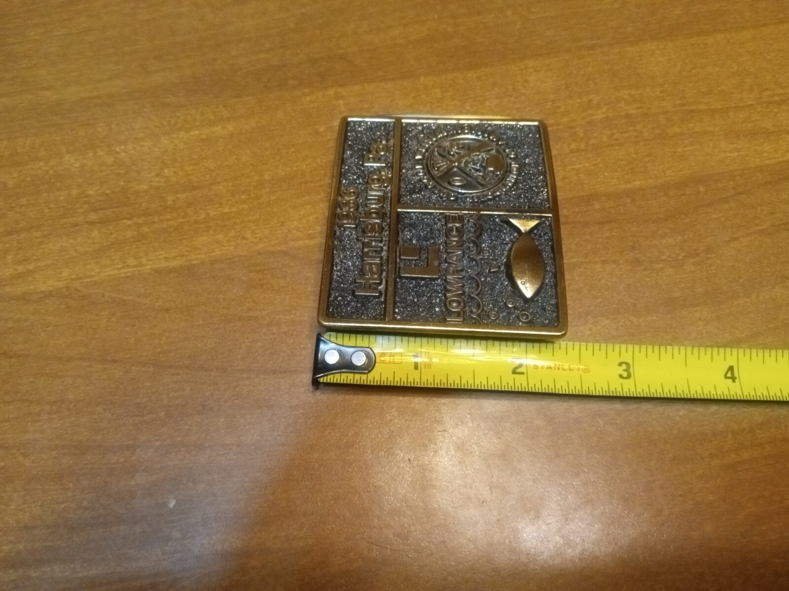 как выглядит Vintage 1986 Harrisburg Pa. Lowrance Belt Buckle Solid Brass USA Made Very Nice фото