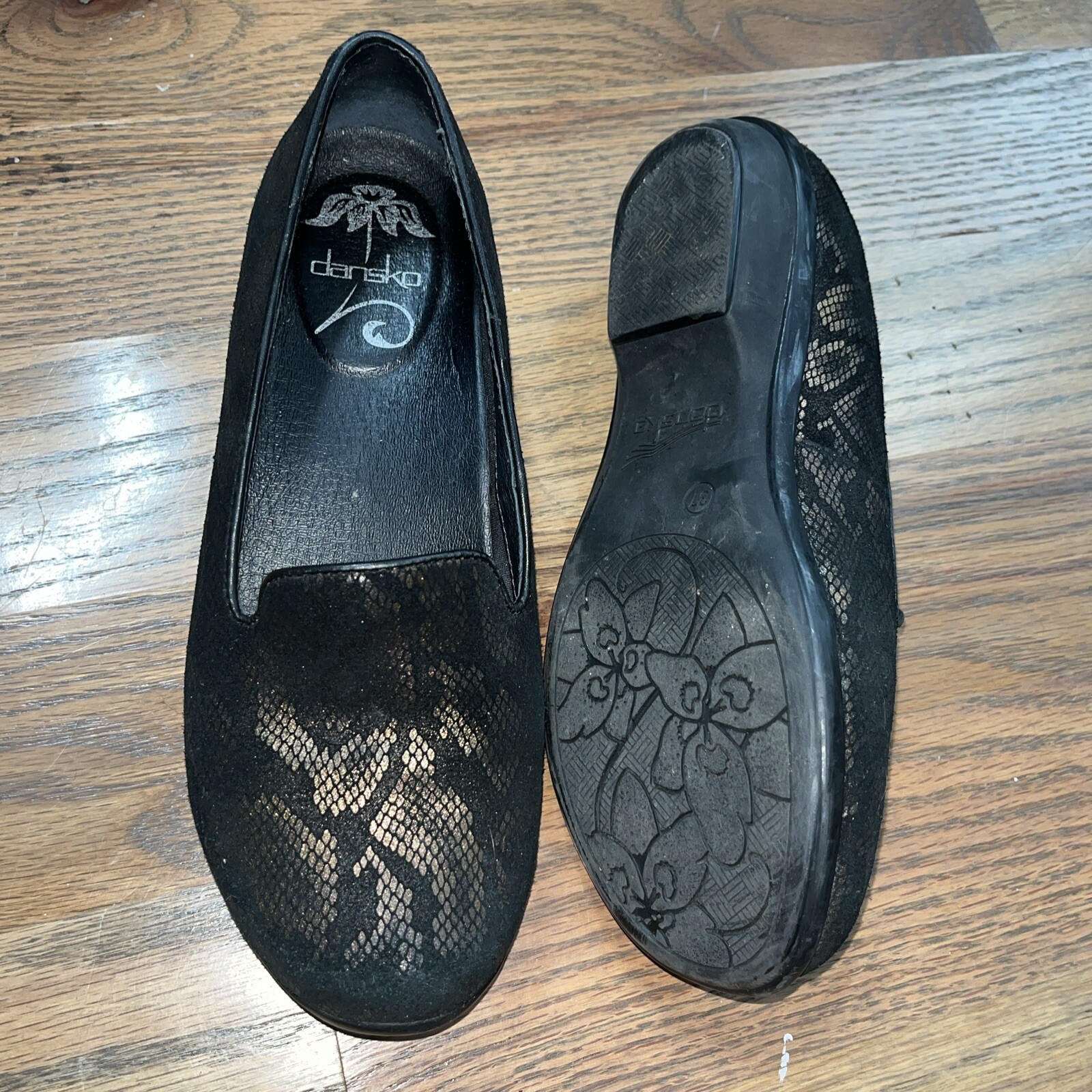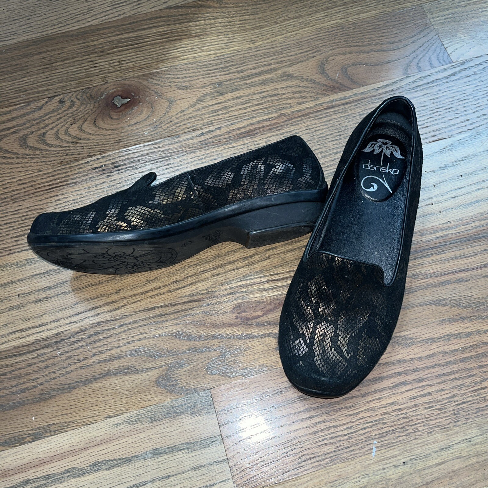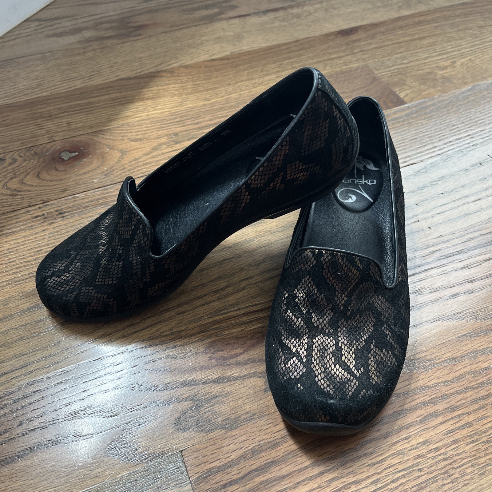 Dansko Womens Olivia black Bronze Snakeskin Print slip on loafers sz 37 7