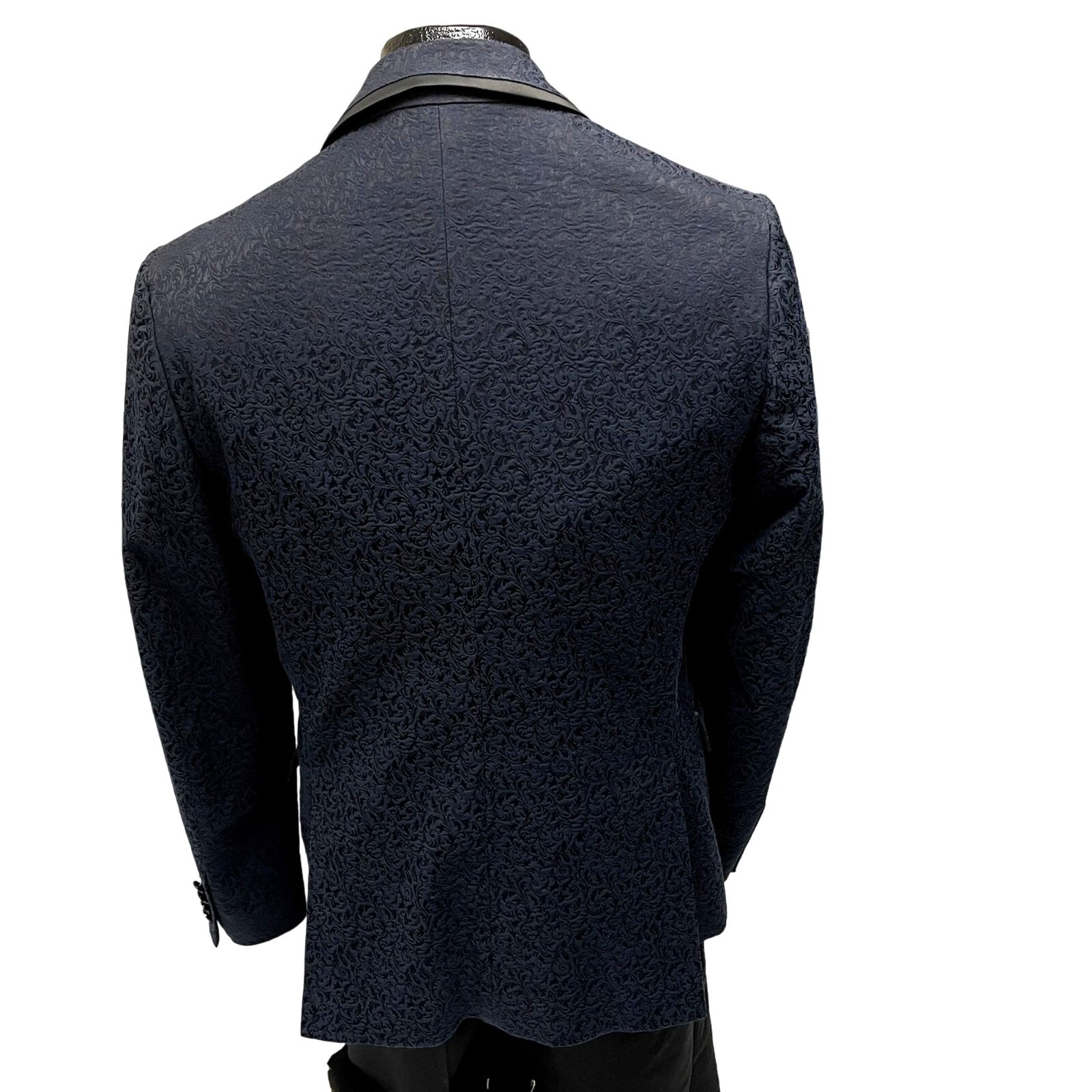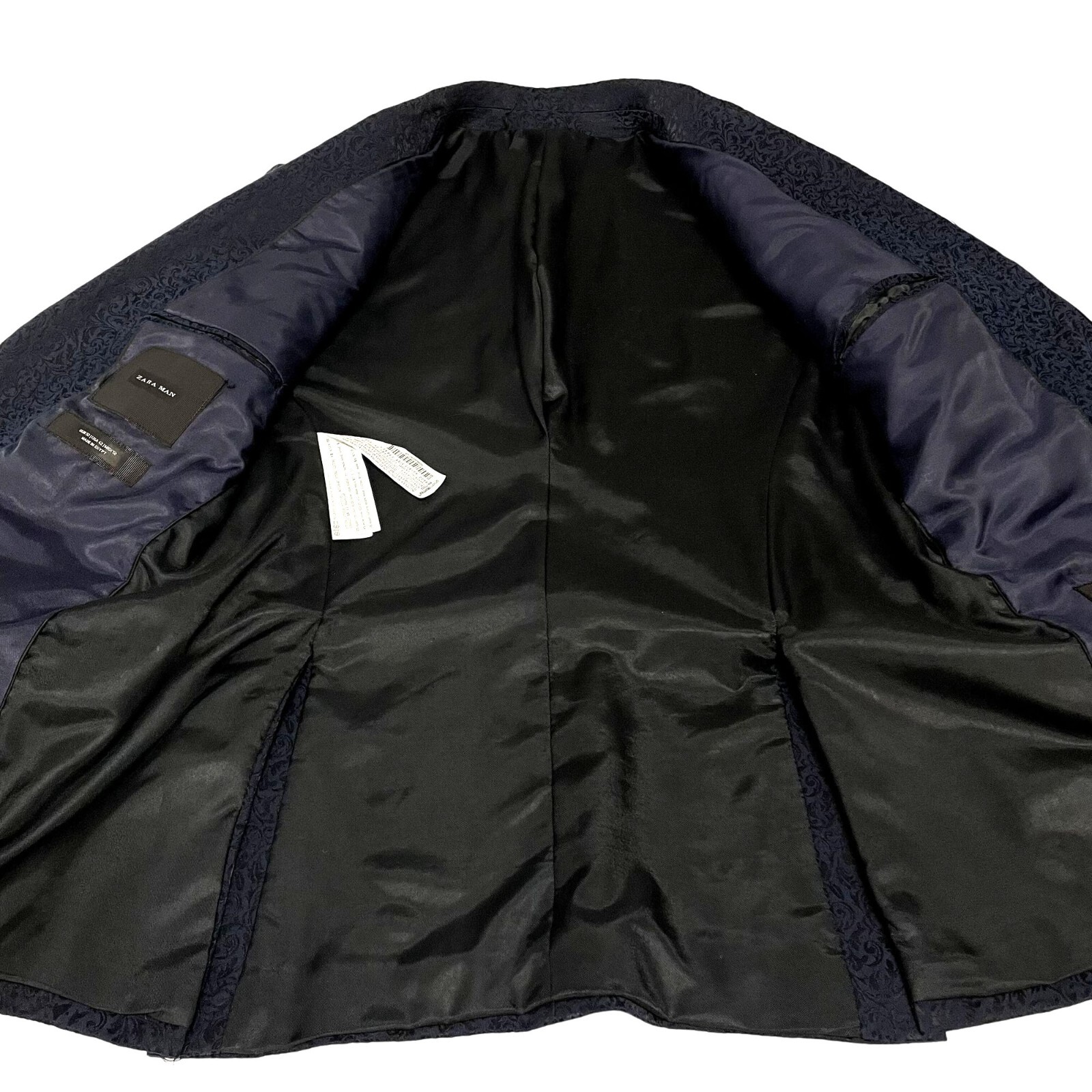 Zara Man BLUE Textured BROCADE Sport Coat Tux SATIN TRIM Formal Tuxedo Blazer 38
