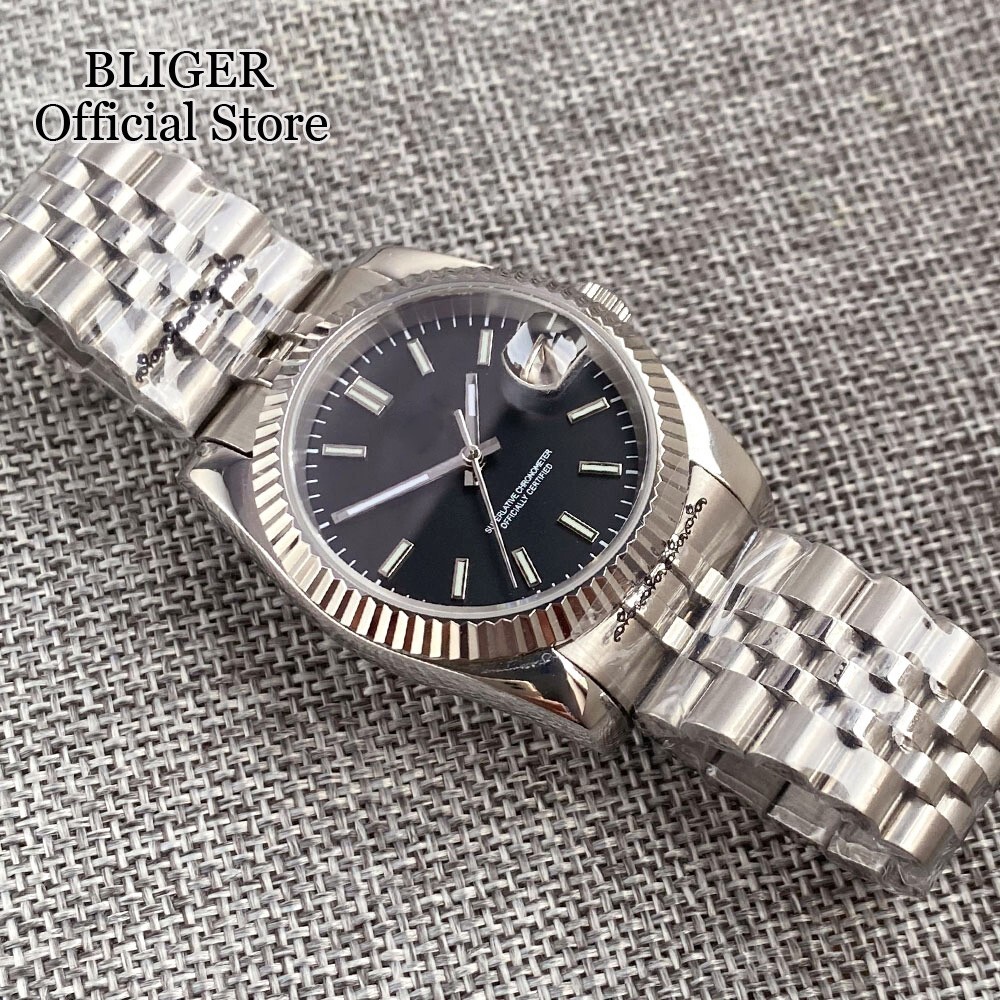 как выглядит 39mm NH35 Black Dial Mechanical Automatic Watch Men Jubilee Bracelet Screw Crown фото