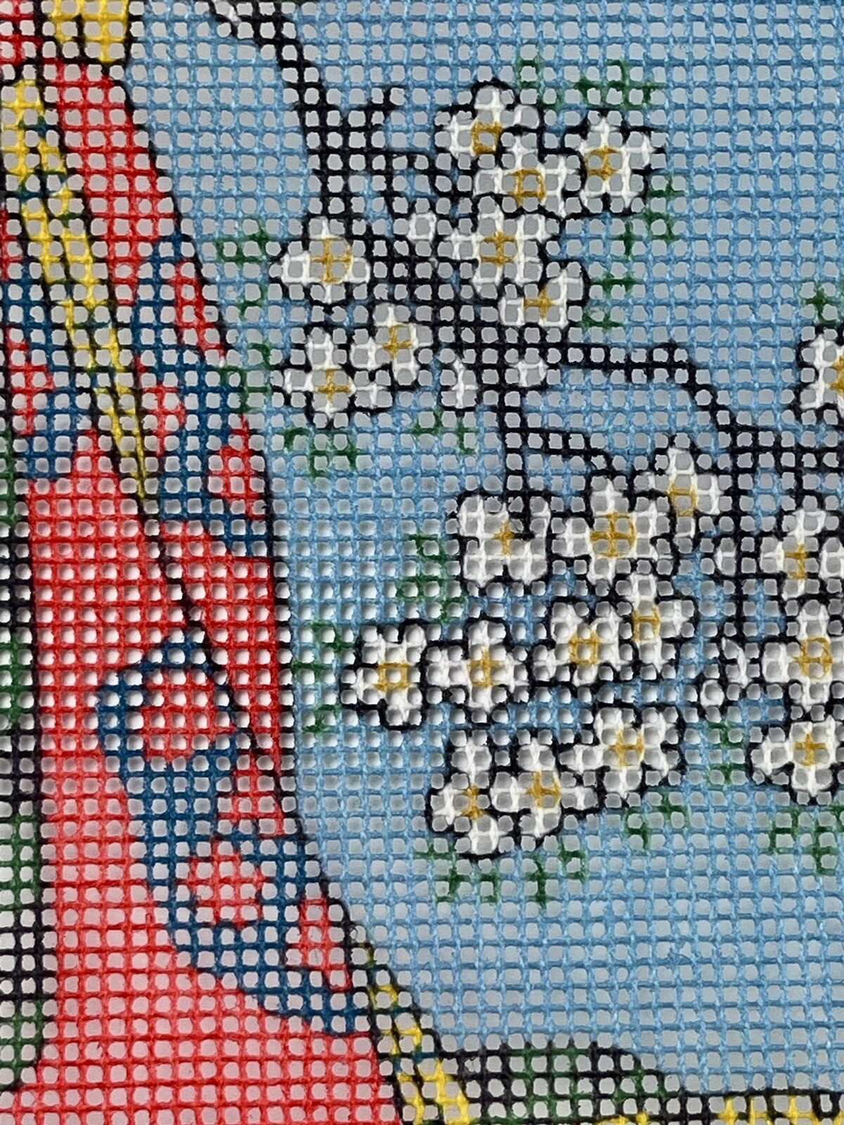 как выглядит Needlepoint Asian Japanese Woman Floral Kimono On Crafting Canvas New Vintage фото
