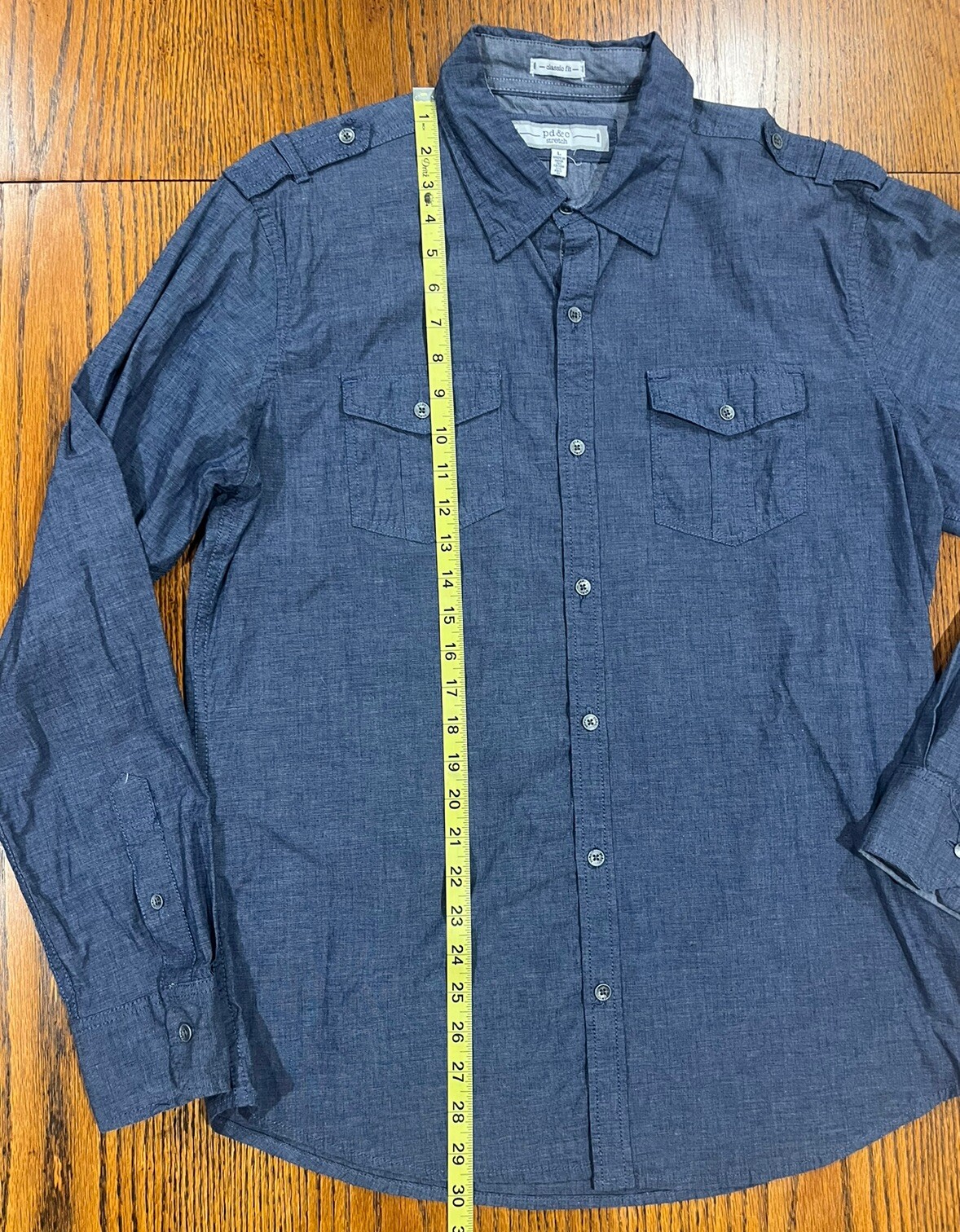 PD C Stretch Mens Long Sleeve Button Up With Pockets and Size L Blue