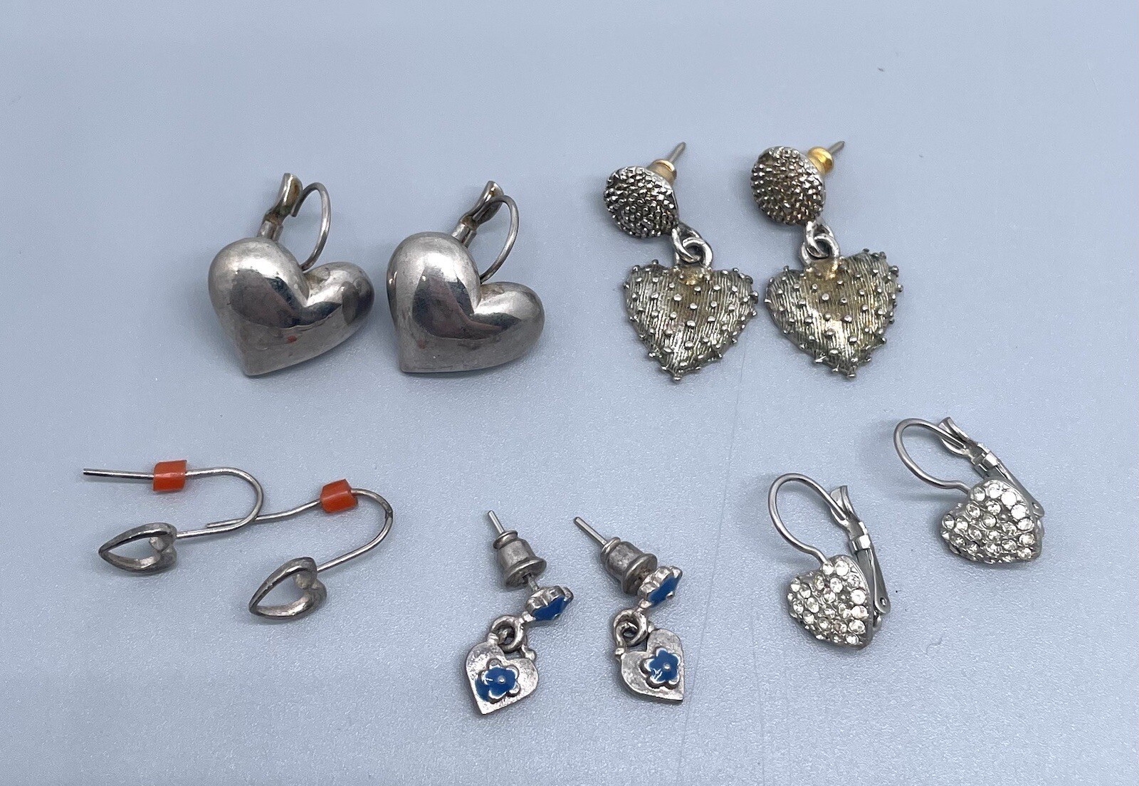 5 Heart Shaped Silver Tone Dangle Drop Earring Lot