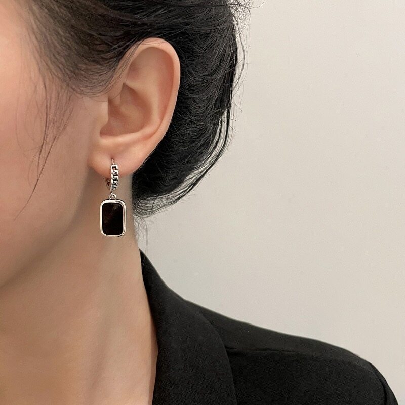 New Design Vintage Punk Asymmetric Earring For Women Black Long Tag Tassel Chain