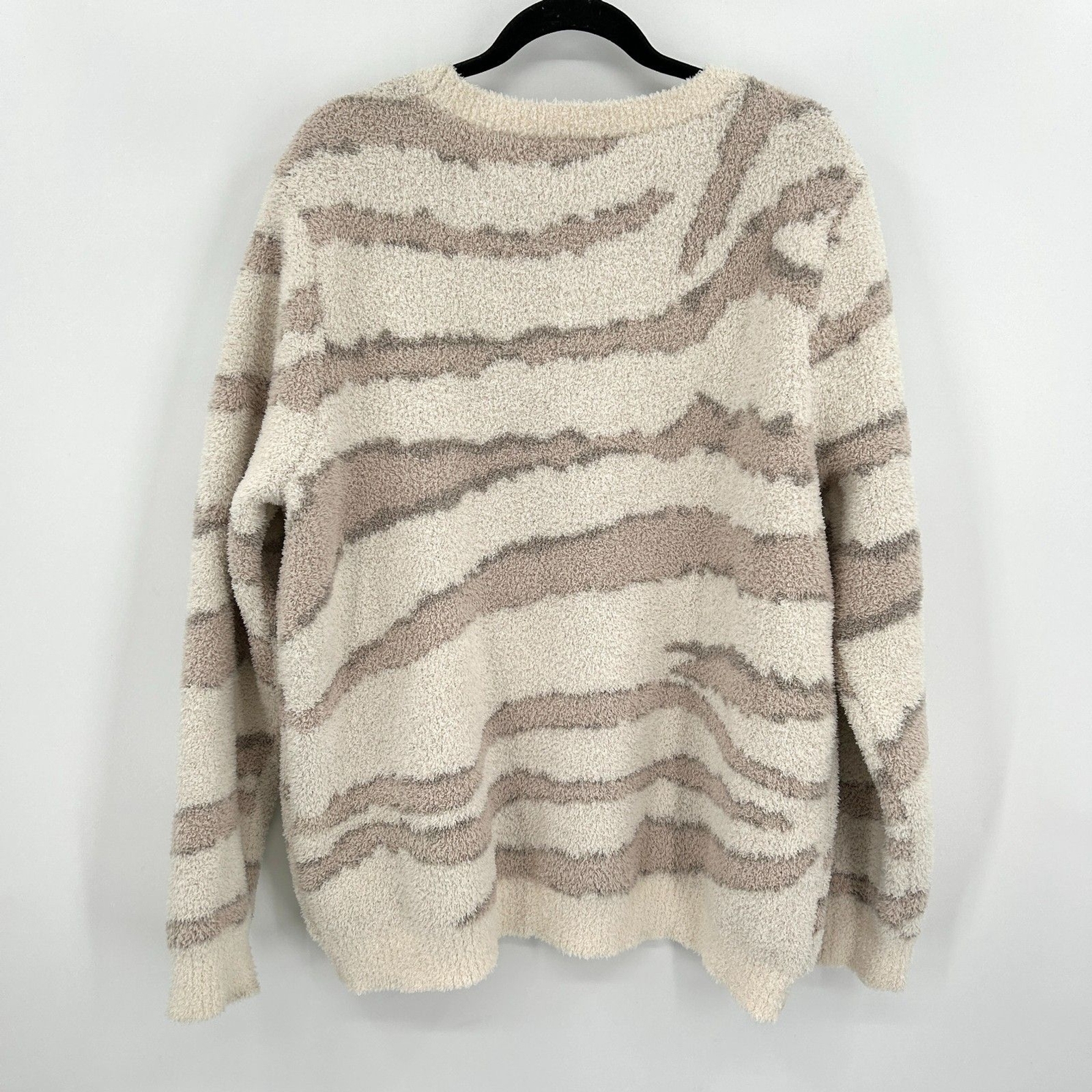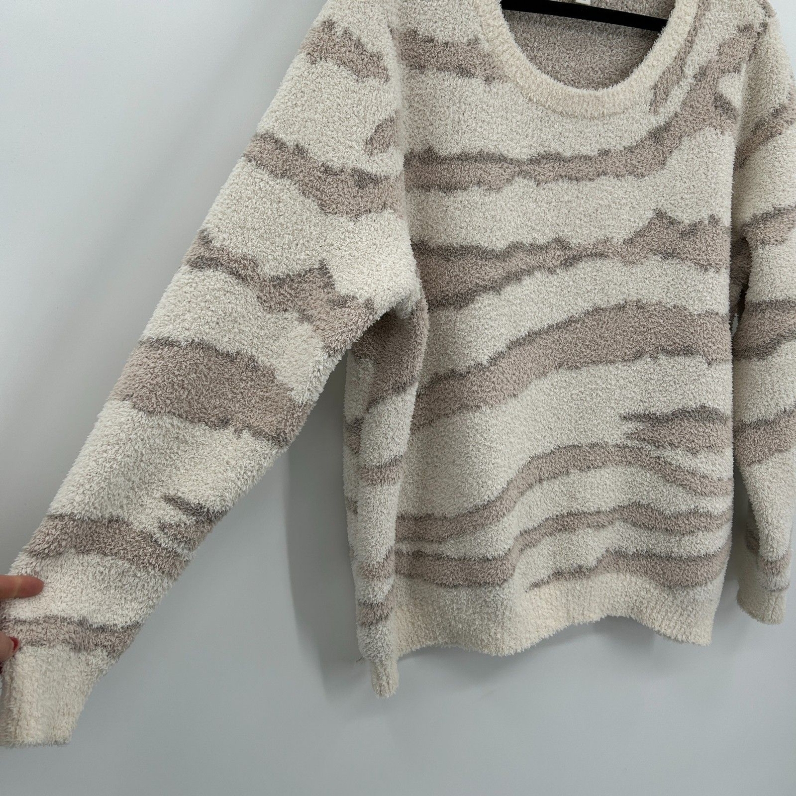 BAREFOOT DREAMS Cozychic White Tan Animal Print Super Soft Crew Neck Sweater 1X