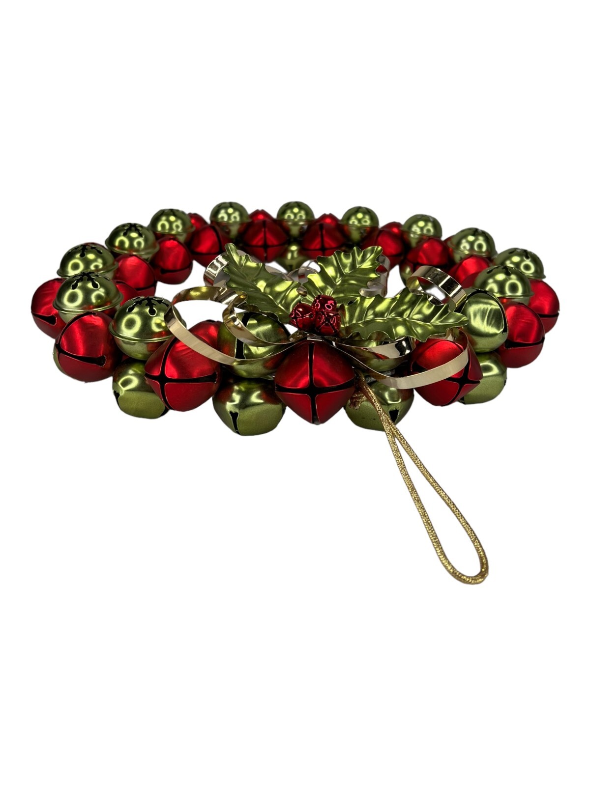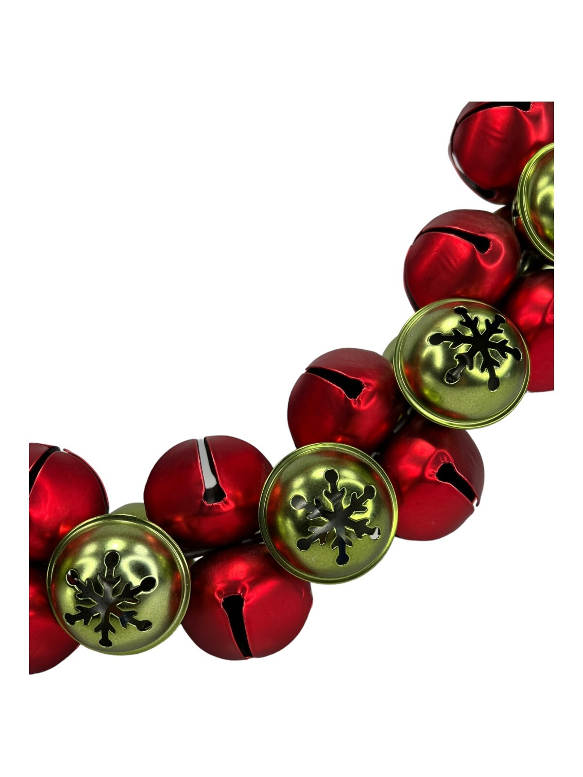 Bell Wreath with Metal Bow made Of Tin Red Gold Snowflake Cut Design