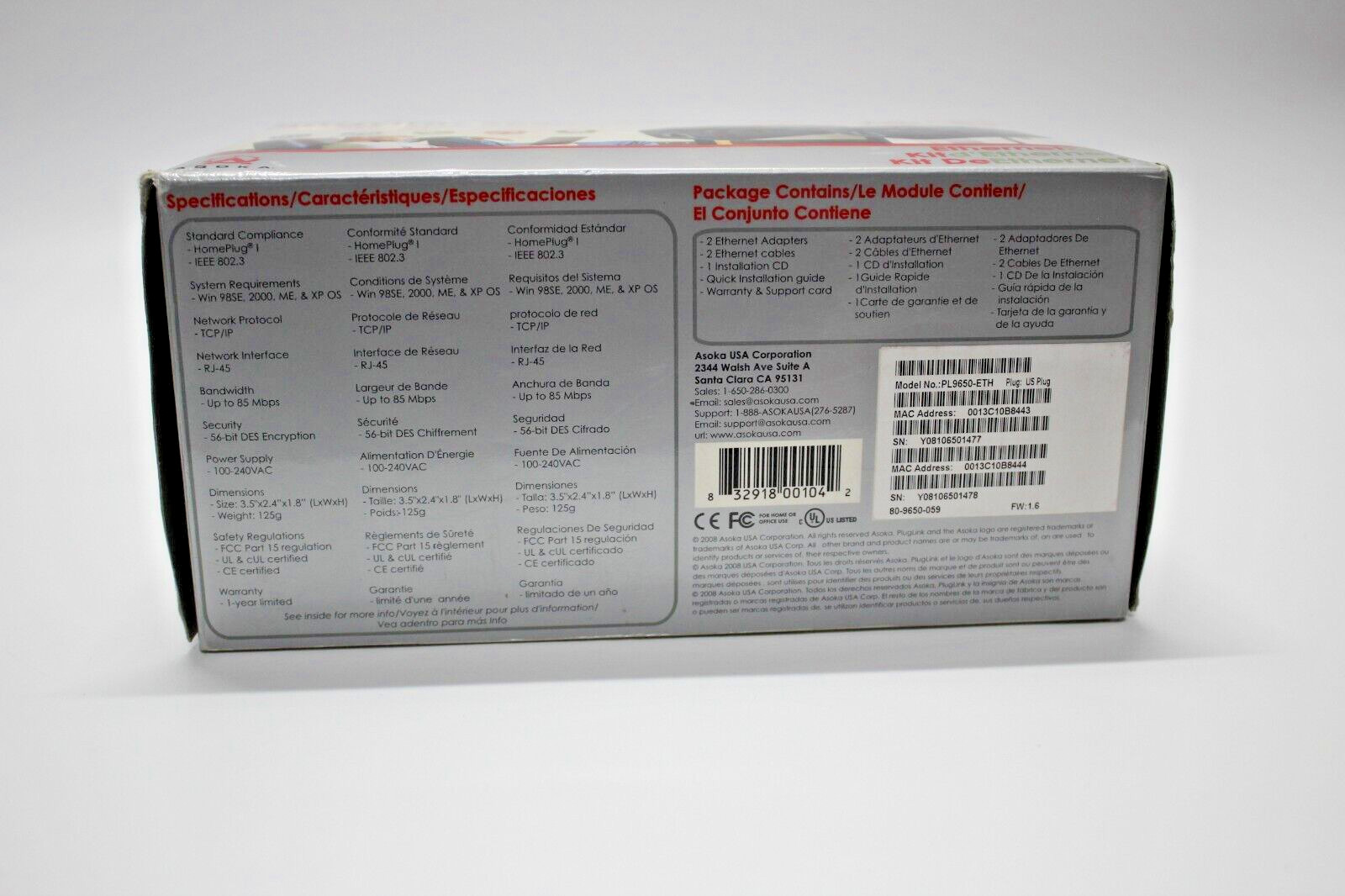 PlugLink 9650 Ethernet Adapter Asoka Powerline PL9650-ETH White